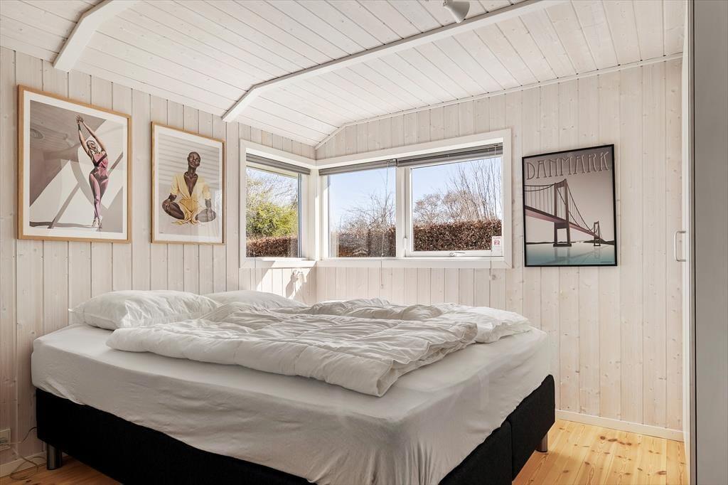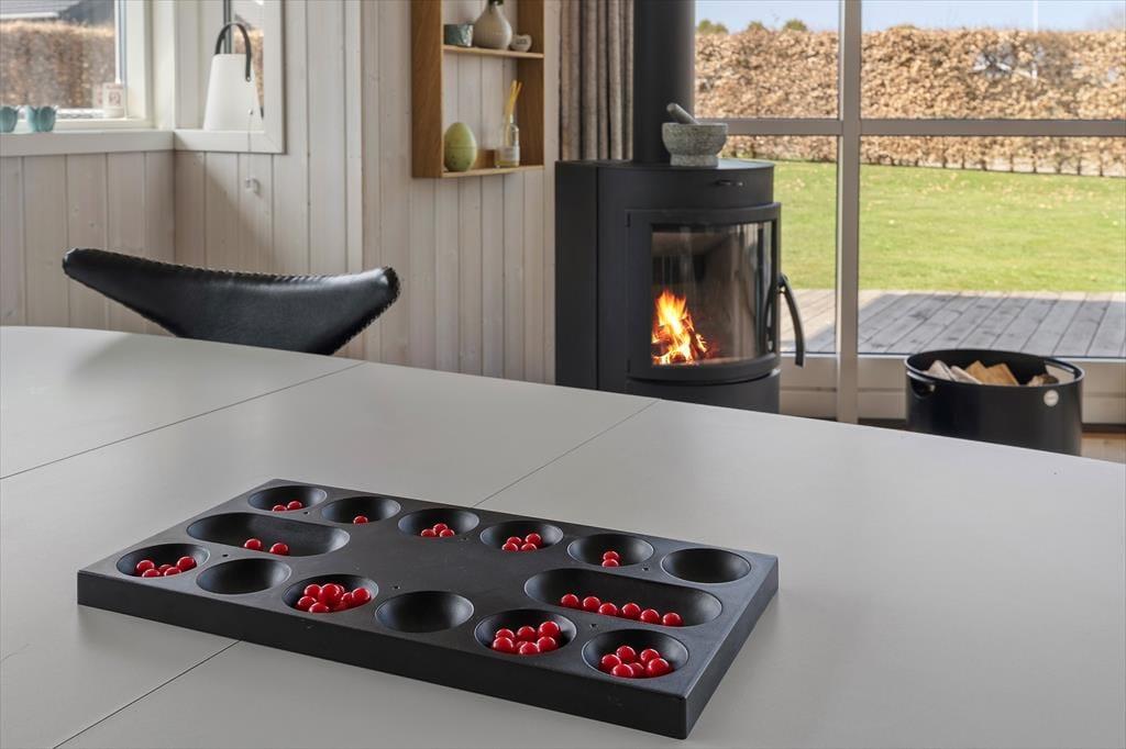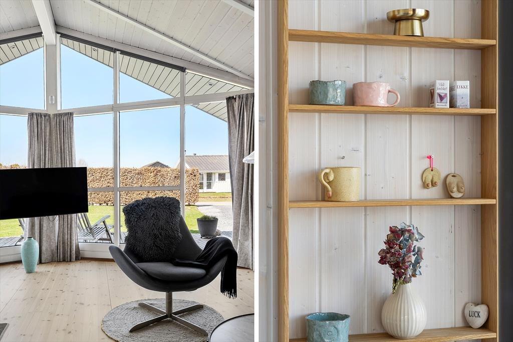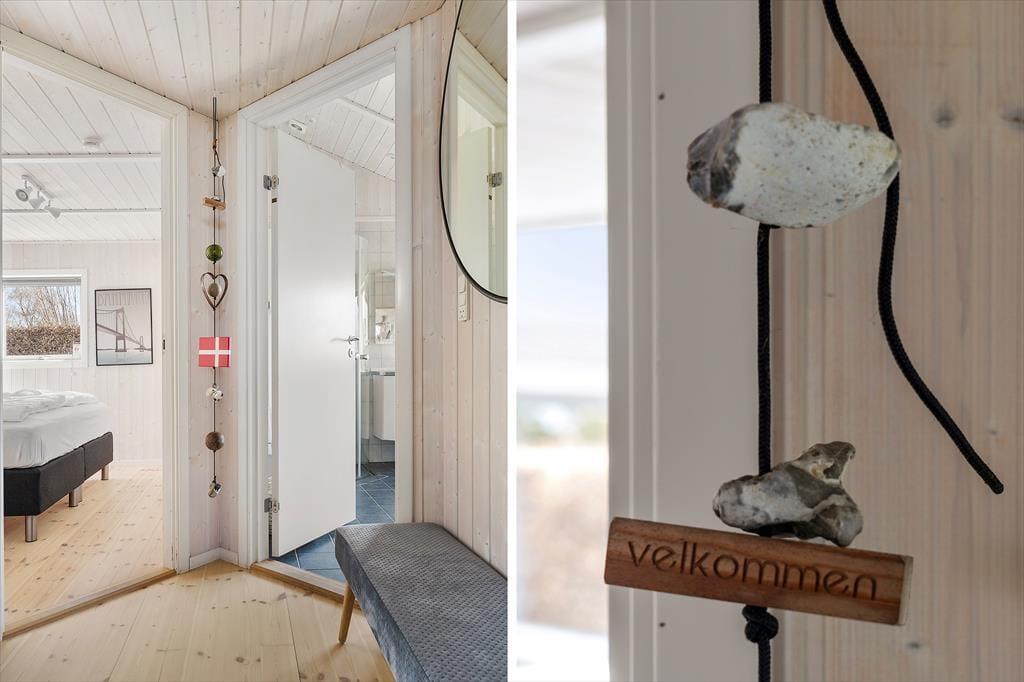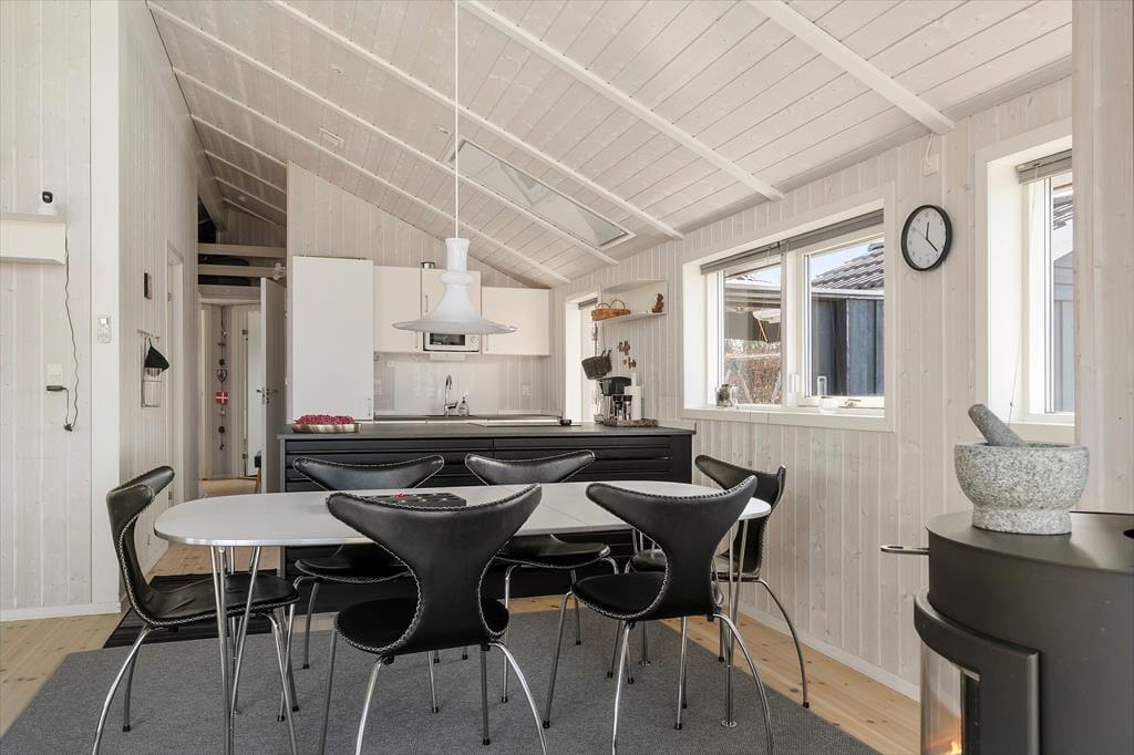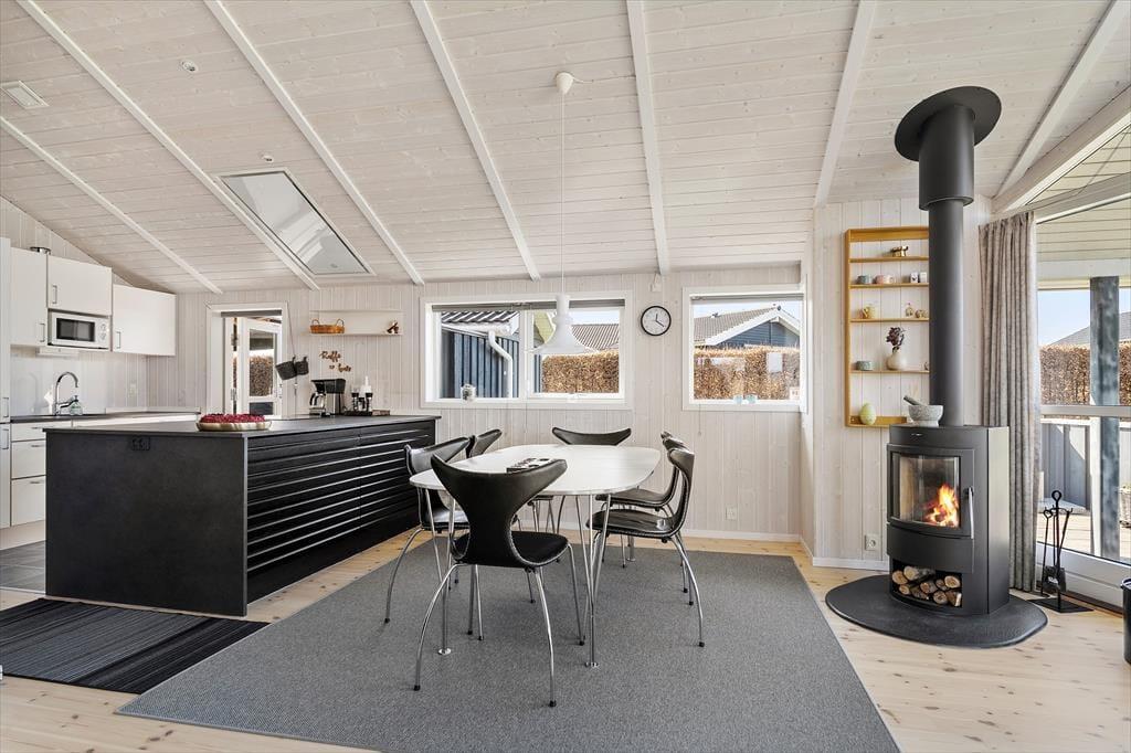 Når du træder ind i sommerhuset, mødes du af en lys og imødekommende atmosfære med loft til kip og store vinduespartier, der lader lyset strømme ind. Indretningen er hyggelig og funktionel – her kan hele familien samles om madlavningen i det åbne køkken, mens snakken går ved spisebordet. Stuen indbyder til afslapning med bløde møbler og et dejligt kig ud til den grønne have. Badeværelset er et kapitel for sig: Her kan du sænke skuldrene i spaen efter en frisk gåtur langs stranden eller en stille stund på terrassen. Huset er skabt til ro og nærvær – og til at give dig den ferie, du længes efter.