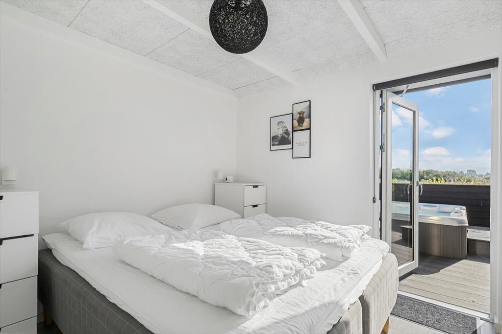 Indenfor venter en lys og indbydende atmosfære i hele huset. Her er der plads til leg og samvær, og de rummelige opholdsområder indbyder til hyggelige stunder sammen. Huset er designet til at stimulere alle sanser og giver mulighed for både aktivitet og afslapning. I aktivitetsrummet kan du udfordre dine e i bordfodbold eller air hockey, eller nyd et nostalgisk spil på den klassiske arkademaskine. For dem, der ønsker at forkæle sig selv, er wellness-oplevelserne ikke langt væk. Træd ud på terrassen og hop i det udendørs spabad, hvor suset fra boblerne skaber en oase af velvære, mens I nyder udsigten til den frodige natur. Vejret kalder kun børnene ud til leg, da grunden tilbyder plads til leg og aktiviteter for både store og små.