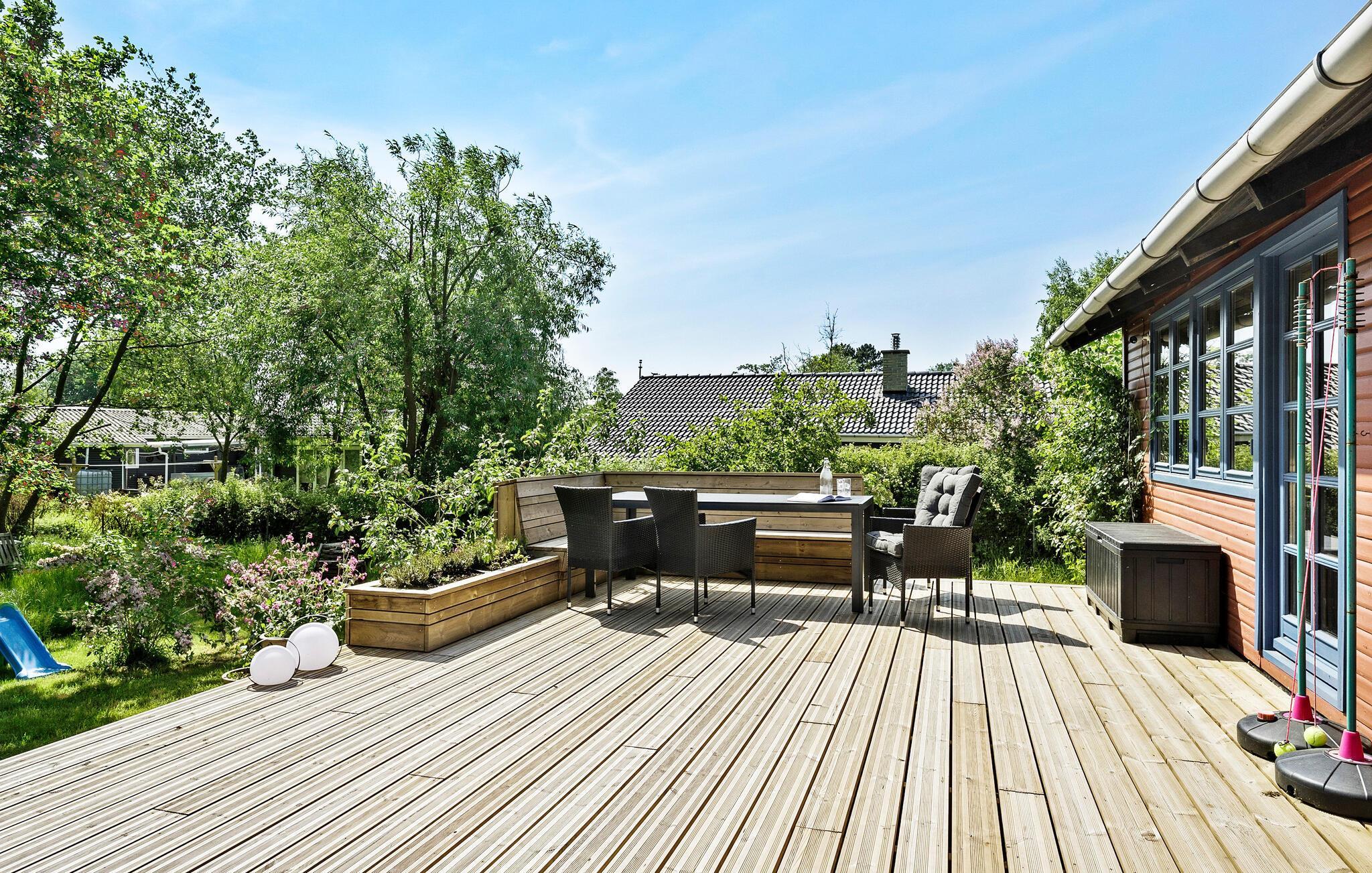 Huset ligger på en stor, dejlig grund med to rummelige solterrasser og en smukt anlagt have, hvor børnene kan løbe rundt og lege, når solen skinner. Her er masser af gode legeredskaber samt både badminton og en flytbar discgolf-kurv, så ingen kommer til at kede sig. Når I er blevet varmet godt igennem, kan I tage en skylder under udebruseren og lade jer tørre i solen.