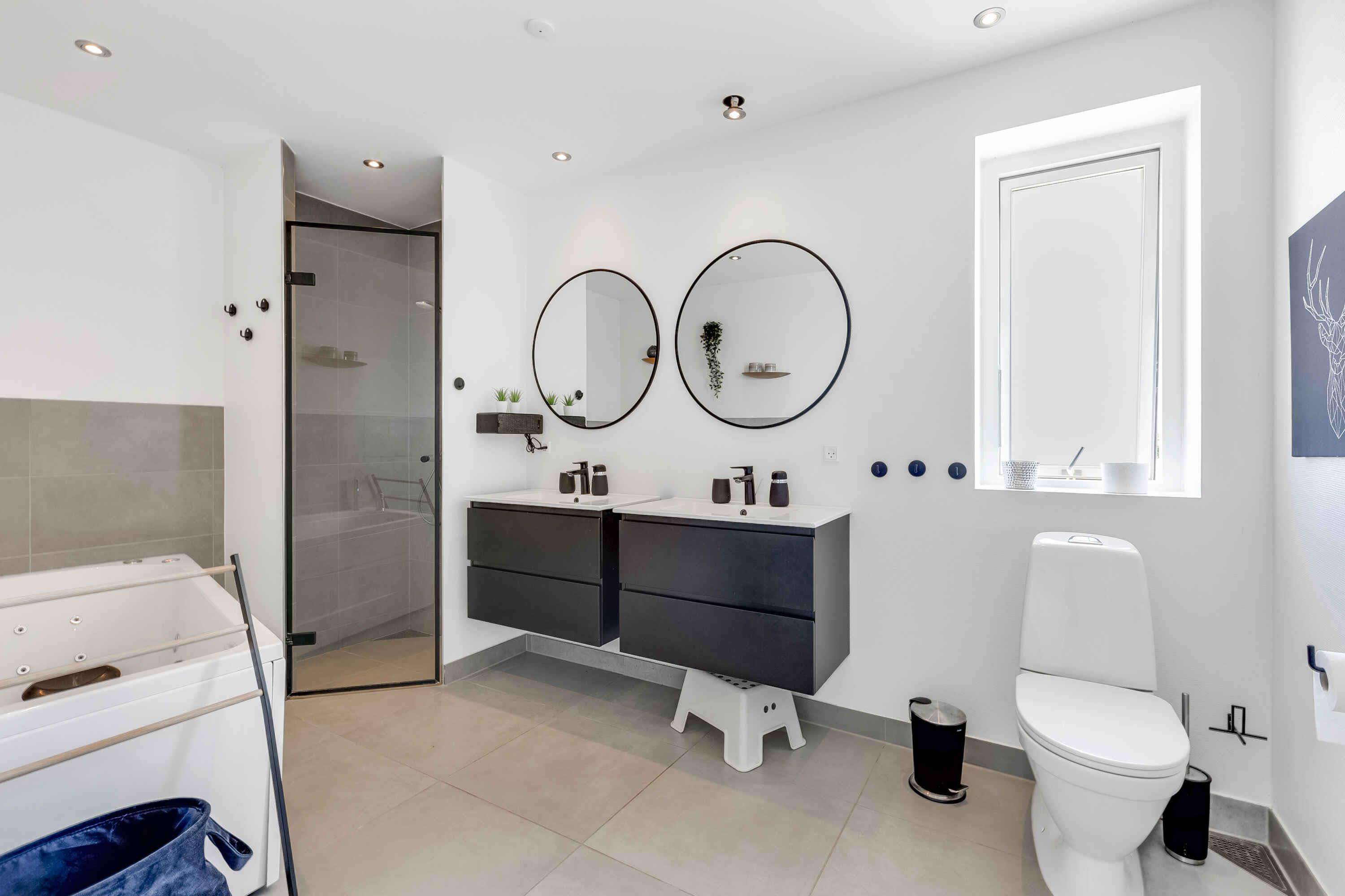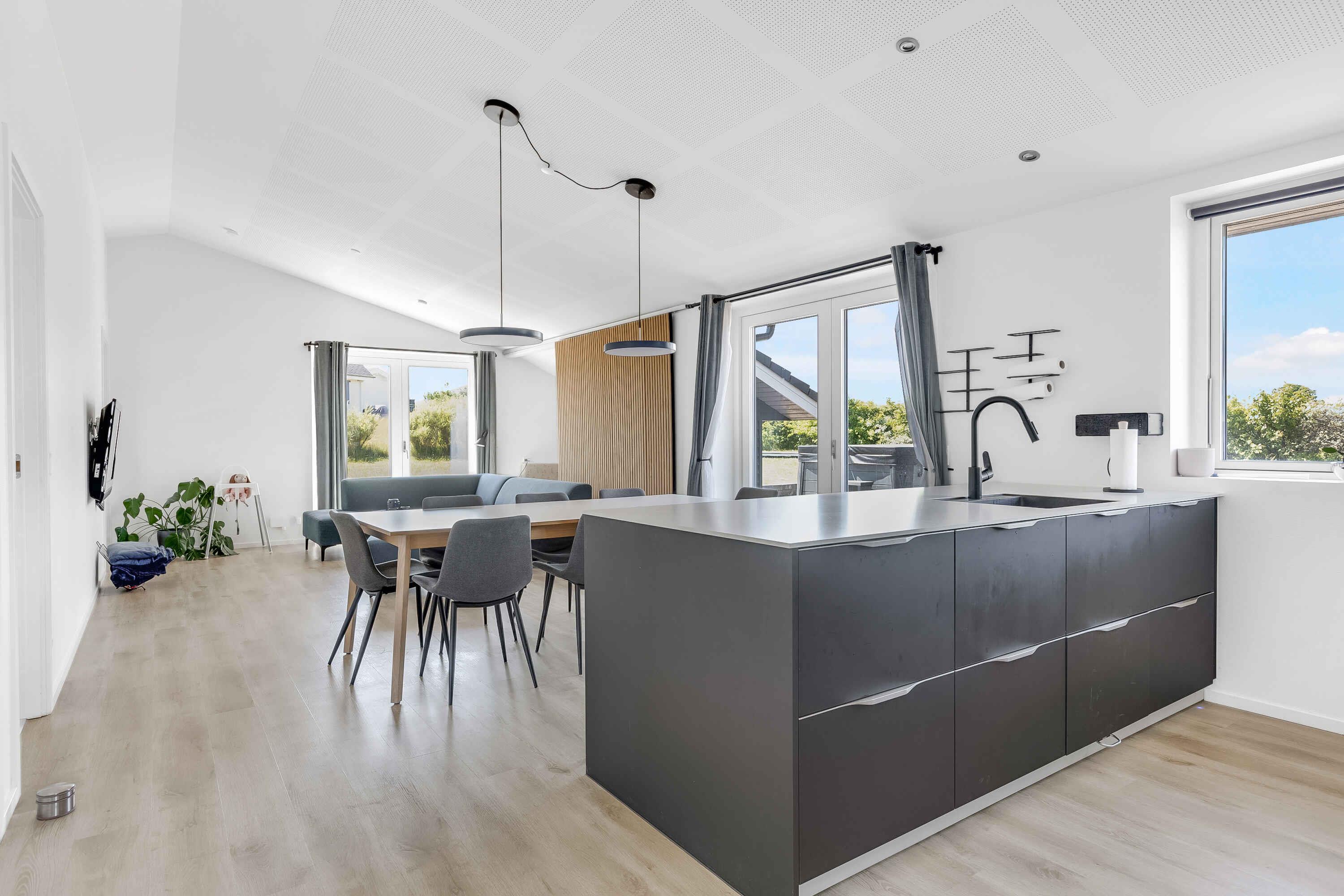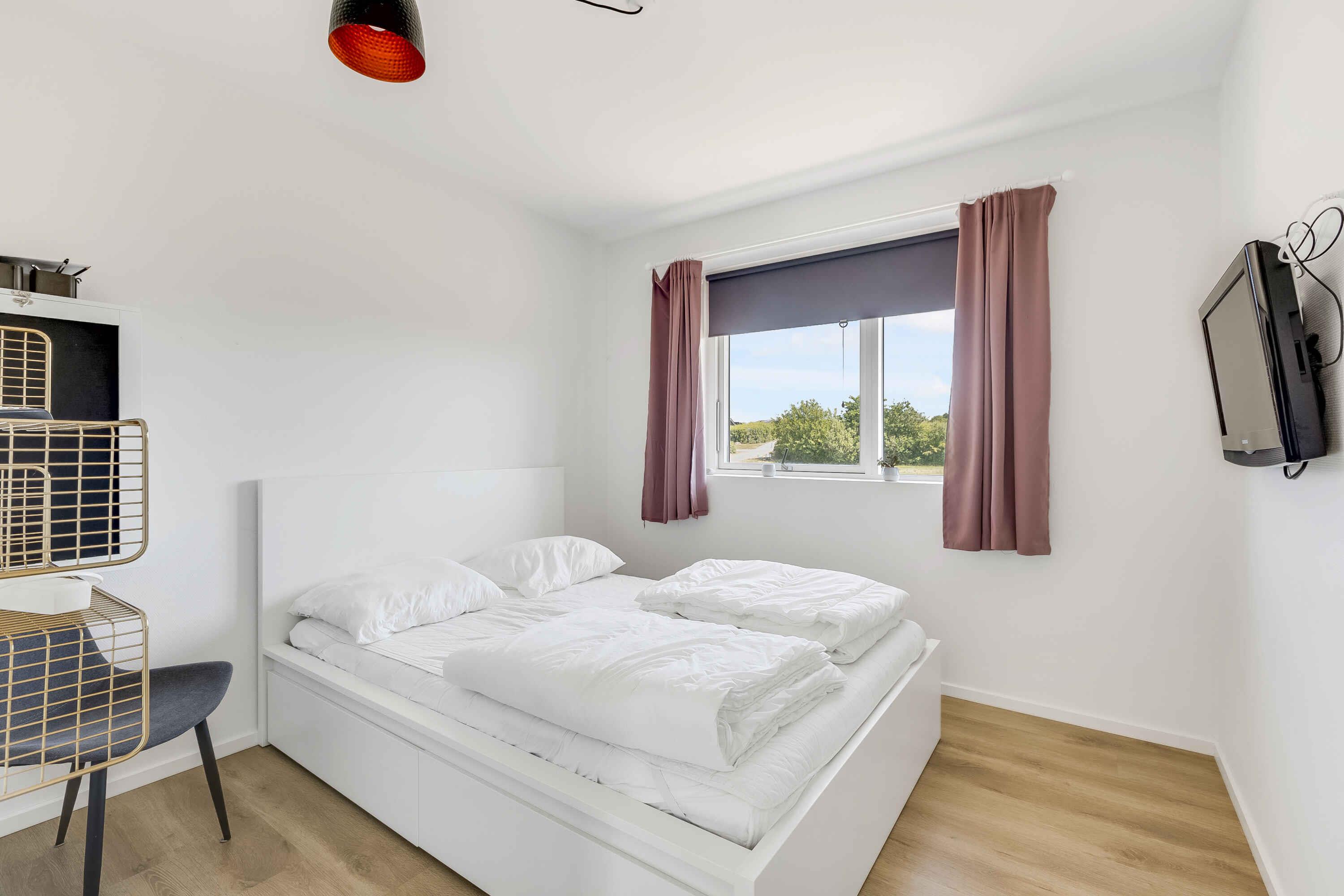 Nyd et ophold i et moderne og luksuriøst sommerhus, der ligger for enden af en rolig vej. Her kan du slappe af på en ugenert terrasse med et udendørs spabad tilgængeligt året rundt, elegante loungemøbler og et fuldt udstyret udekøkken. Ferieboligen har plads til 8 voksne og 1 barn op til 3 år, så tag hele familien med og måske endda dit kæledyr. Sommerhuset er bygget i 2019, og har god plads til alle med sine 115 m². Der er gulvvarme i hele huset, og en energivenlig varmepumpe sørger for optimal temperatur. Vaskemaskine og tørretumbler er også tilgængelige, og fryseren har en kapacitet på 60 liter. Beliggende på en stor havegrund på 893 m², er der rig mulighed for udendørs aktiviteter. Havet ligger kun 530 m væk, og for golfentusiaster er der en bane i nærheden. Terrassen byder ikke kun på spa og loungemøbler men også på en trampolin og en grill. Der er også parkeringsplads lige ved døren. Indenfor er der fire komfortable soveværelser. Sovepladserne er fordelt på dobbeltsenge, har man en lille med, er der er også en barneseng til rådighed. Køkkenet er topmoderne med induktionskogeplader, varmluftovn, mikrobølgeovn og opvaskemaskine. Der er et toilet og ét badeværelse, komplet med bruseniche, toilet og gulvvarme. Og som prikken over i'et er der mulighed for at slappe af i et indendørs spa for to eller et udendørs standvandsspa for op til seks personer. Med fem fjernsyn og trådløst internet er der underholdning og forbindelse til omverdenen, hvis du skulle få brug for det. UDLEJES IKKE TIL HÅNDVÆRKERGRUPPER! Obs, udlejes ikke til erhversmæssigt brug.