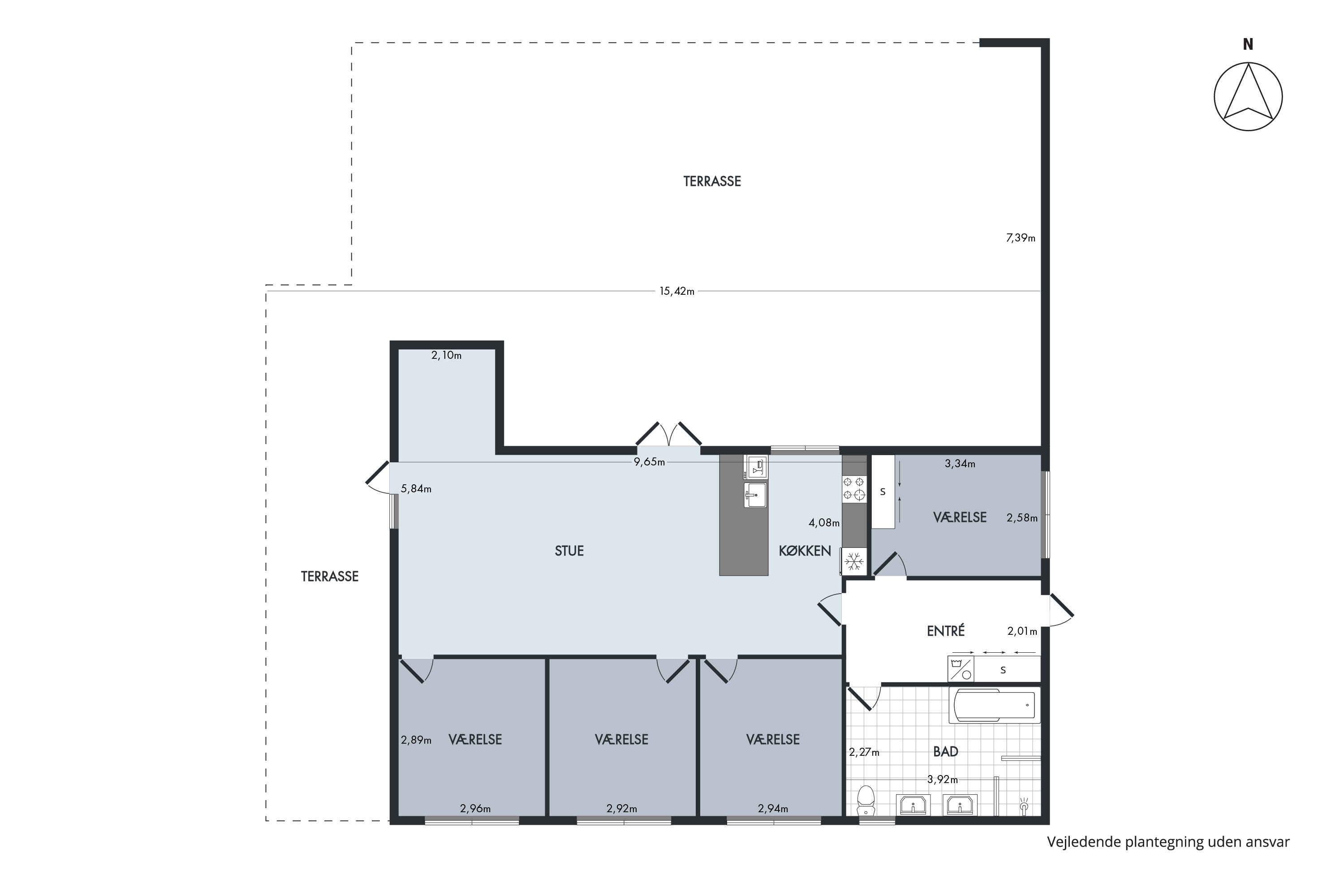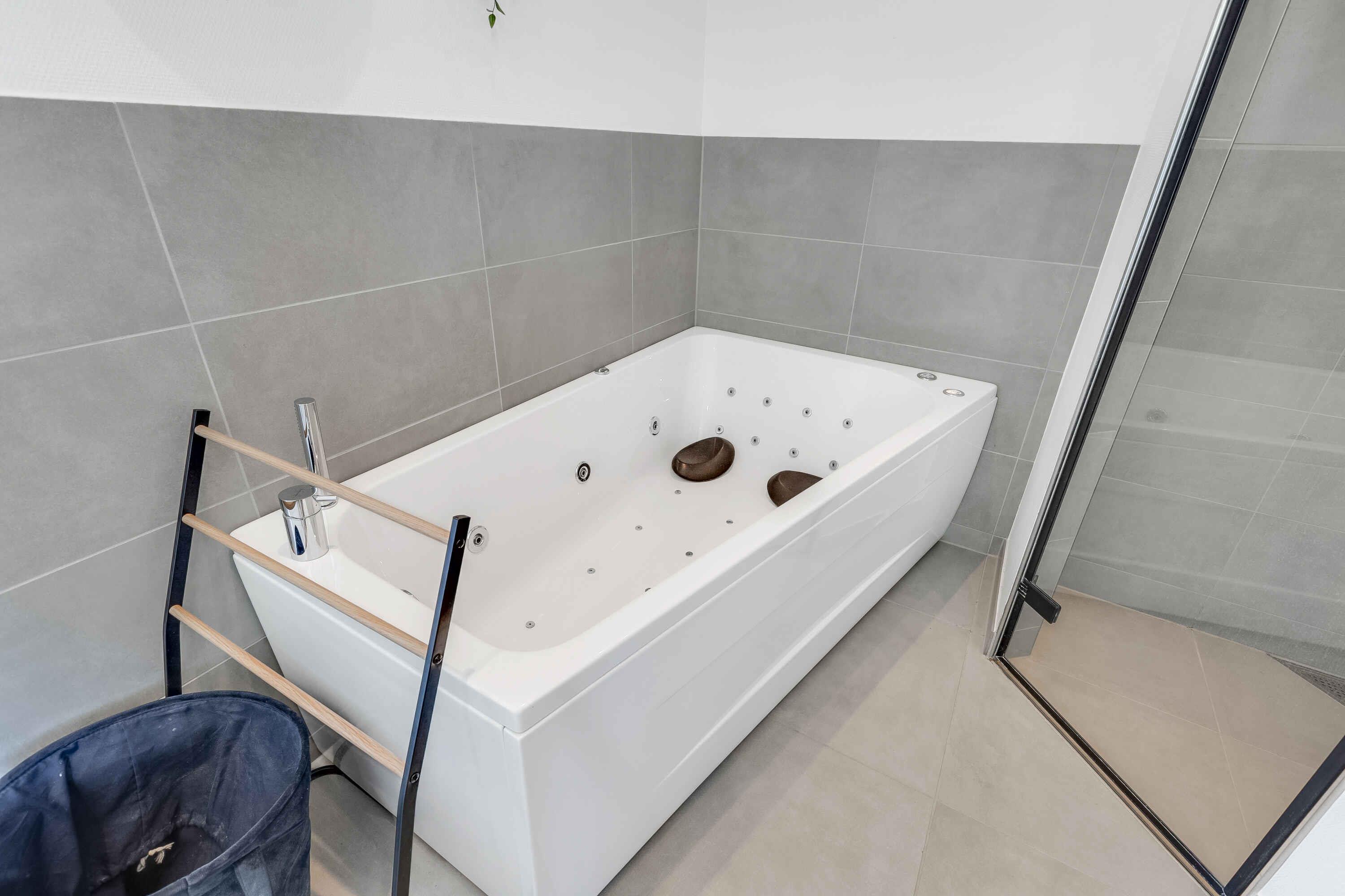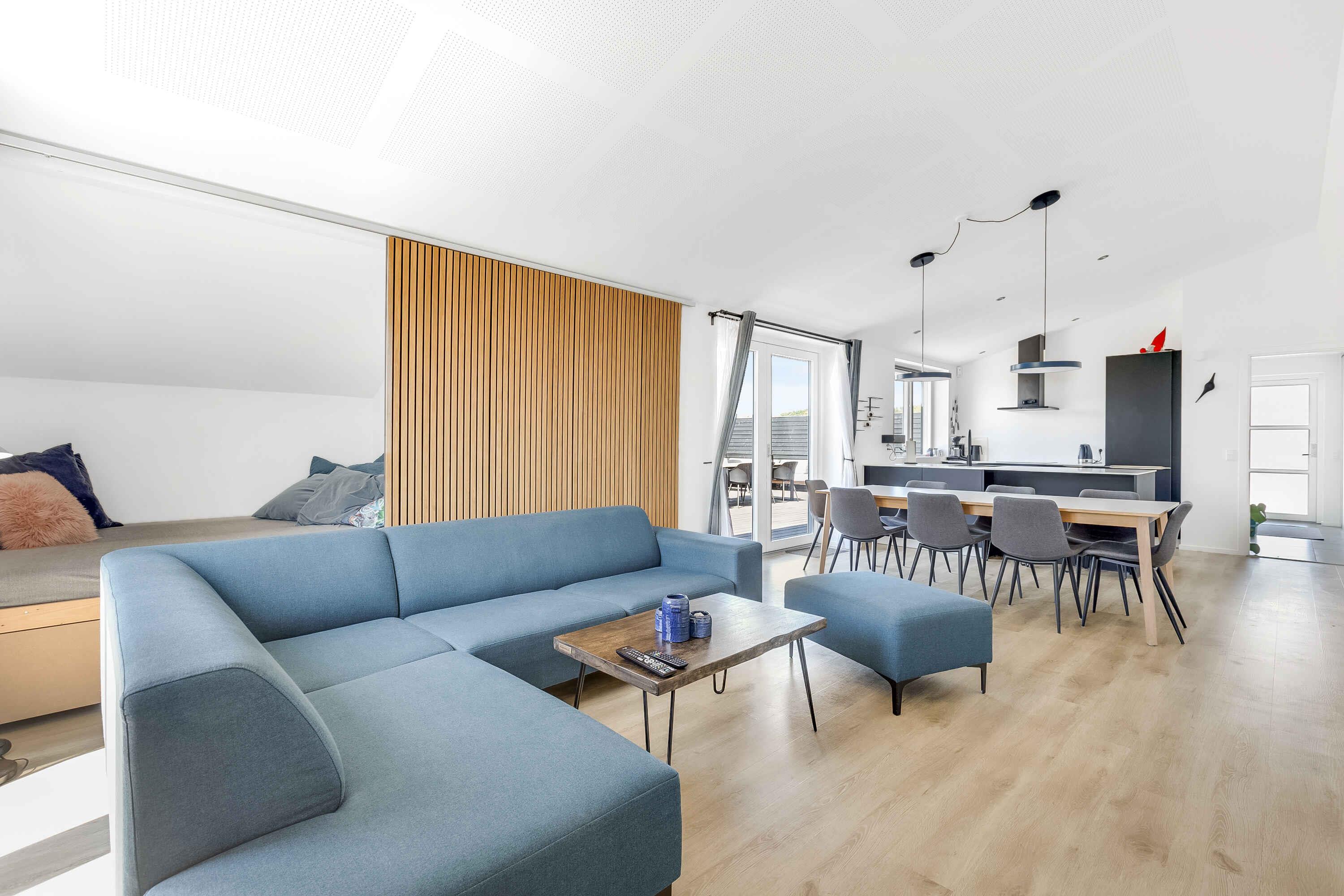 Nyd et ophold i et moderne og luksuriøst sommerhus, der ligger for enden af en rolig vej. Her kan du slappe af på en ugenert terrasse med et udendørs spabad tilgængeligt året rundt, elegante loungemøbler og et fuldt udstyret udekøkken. Ferieboligen har plads til 8 voksne og 1 barn op til 3 år, så tag hele familien med og måske endda dit kæledyr. Sommerhuset er bygget i 2019, og har god plads til alle med sine 115 m². Der er gulvvarme i hele huset, og en energivenlig varmepumpe sørger for optimal temperatur. Vaskemaskine og tørretumbler er også tilgængelige, og fryseren har en kapacitet på 60 liter. Beliggende på en stor havegrund på 893 m², er der rig mulighed for udendørs aktiviteter. Havet ligger kun 530 m væk, og for golfentusiaster er der en bane i nærheden. Terrassen byder ikke kun på spa og loungemøbler men også på en trampolin og en grill. Der er også parkeringsplads lige ved døren. Indenfor er der fire komfortable soveværelser. Sovepladserne er fordelt på dobbeltsenge, har man en lille med, er der er også en barneseng til rådighed. Køkkenet er topmoderne med induktionskogeplader, varmluftovn, mikrobølgeovn og opvaskemaskine. Der er et toilet og ét badeværelse, komplet med bruseniche, toilet og gulvvarme. Og som prikken over i'et er der mulighed for at slappe af i et indendørs spa for to eller et udendørs standvandsspa for op til seks personer. Med fem fjernsyn og trådløst internet er der underholdning og forbindelse til omverdenen, hvis du skulle få brug for det. UDLEJES IKKE TIL HÅNDVÆRKERGRUPPER! Obs, udlejes ikke til erhversmæssigt brug.