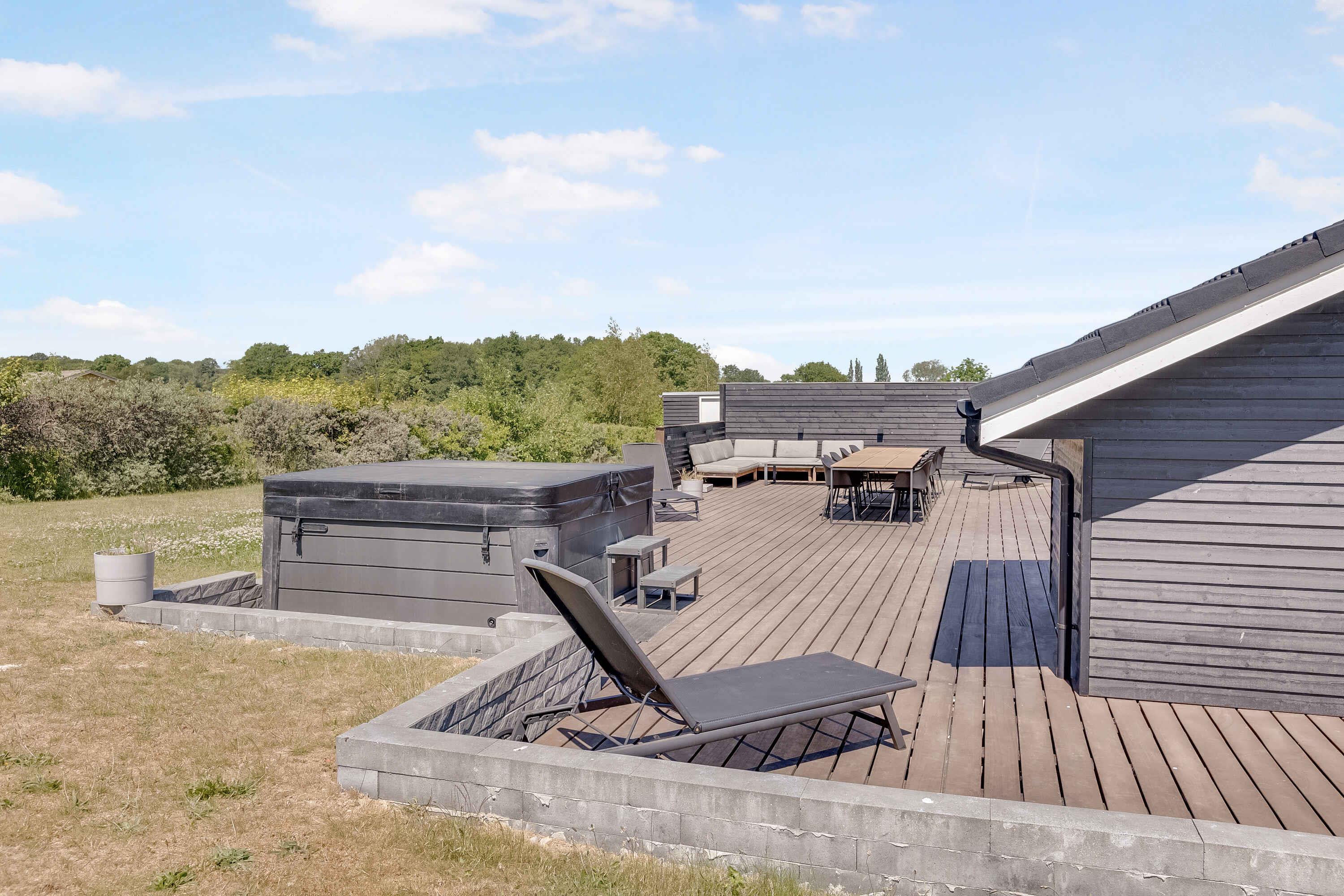 Moderne sommerhus med spabad, udendørs køkken og stor have nær stranden i Frørup.