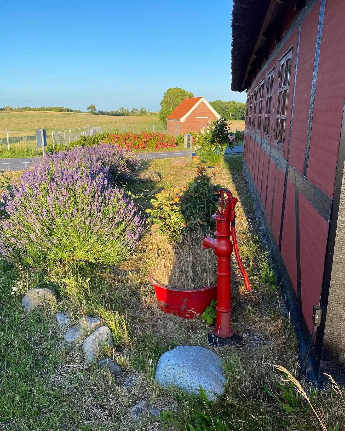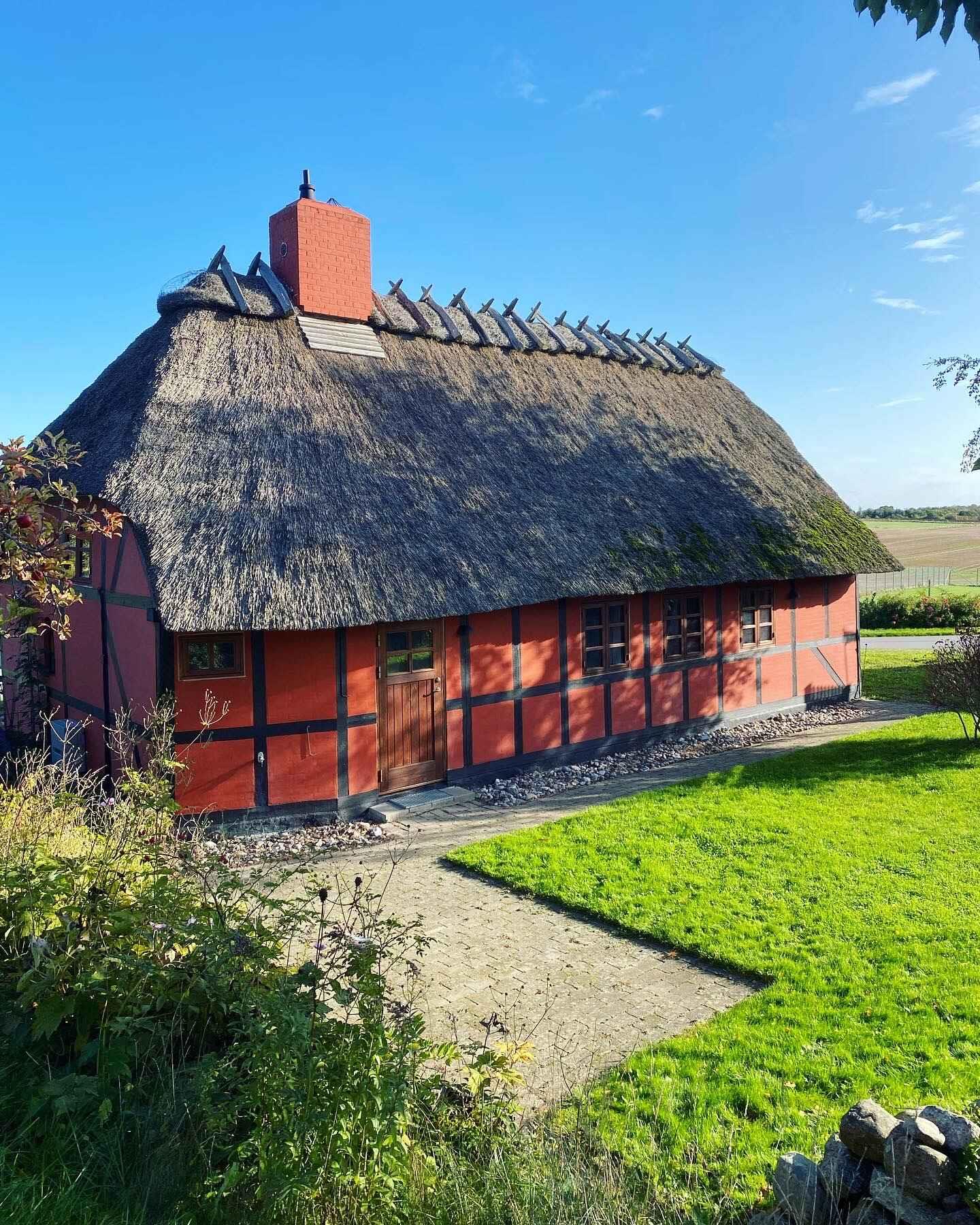 Hyggeligt bondehus i lille landsby med stråtag og havkig