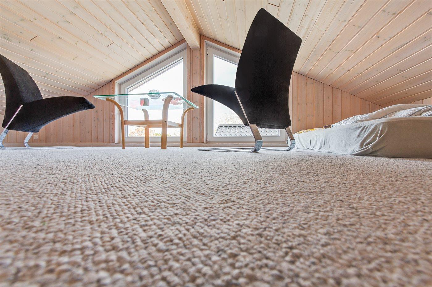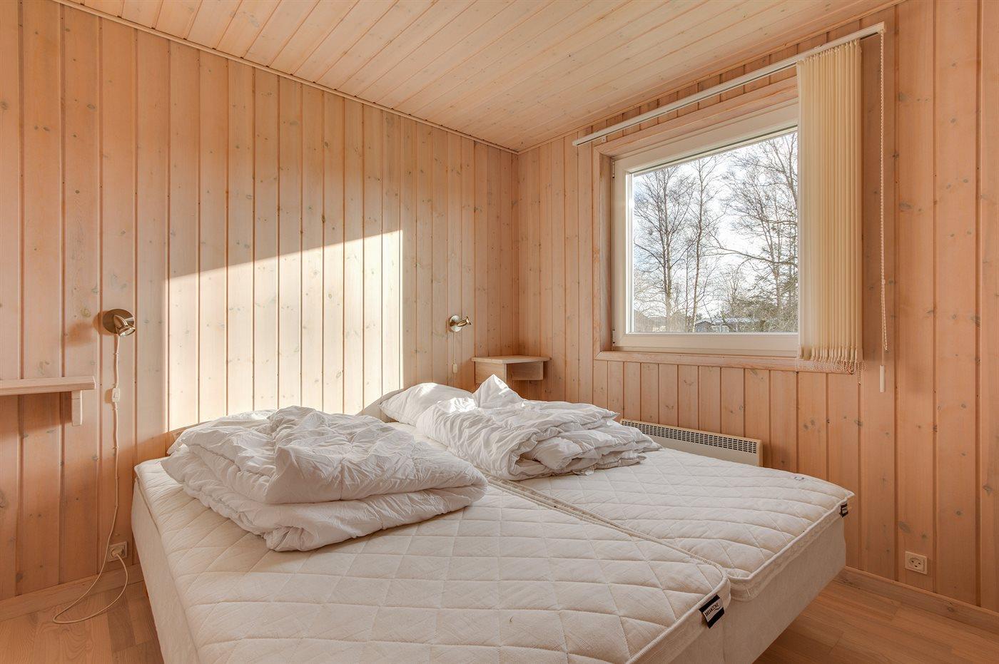 Der er i alt 2 soveværelser. Sovepladserne fordeler sig på: 4 sovepladser i enkeltsenge. 2 sovepladser på madrasser. 2 af disse sovepladser befinder sig på husets hems. Derudover er der 1 stk. barneseng.