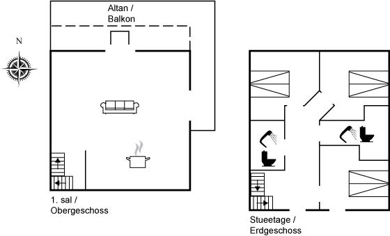 Der er 2 badeværelser med bruseniche og 2 toiletter. Der er gulvvarme på 2 badeværelser.