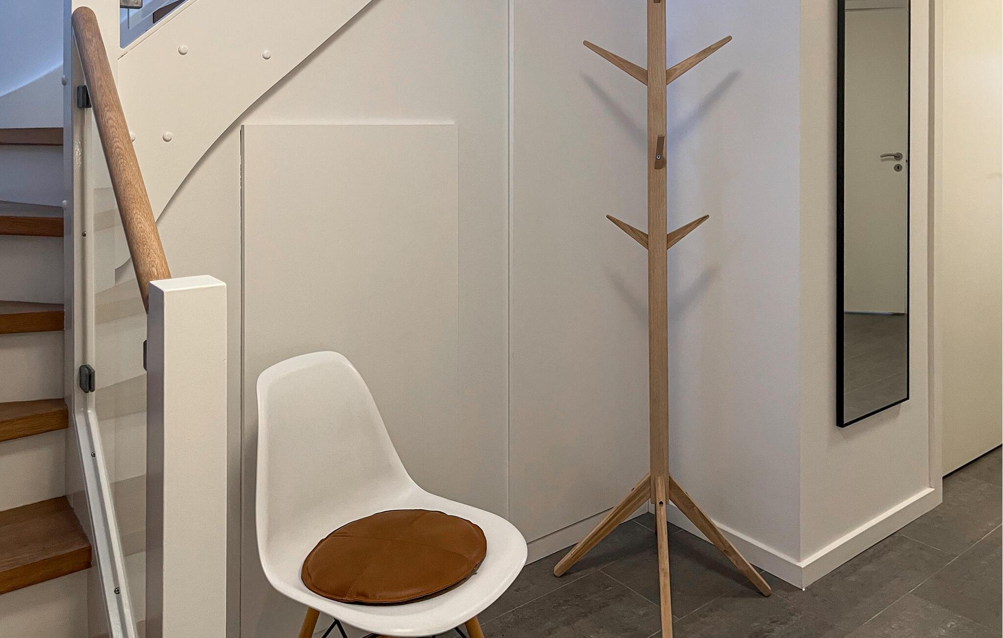 Opholdsområdet i jeres feriehus imponerer med store vinduespartier, der lukker masser af dagslys ind og giver udsigt over det åbne landskab. Brug den hyggelige siddekrog med sofa og lænestole til rolige stunder. Det åbne køkken er moderne udstyret og tilbyder funktionelle arbejdsflader samt god plads til at lave mad sammen. Sæt jer derefter ved spisebordet, og nyd jeres måltider i det venligt indrettede rum.