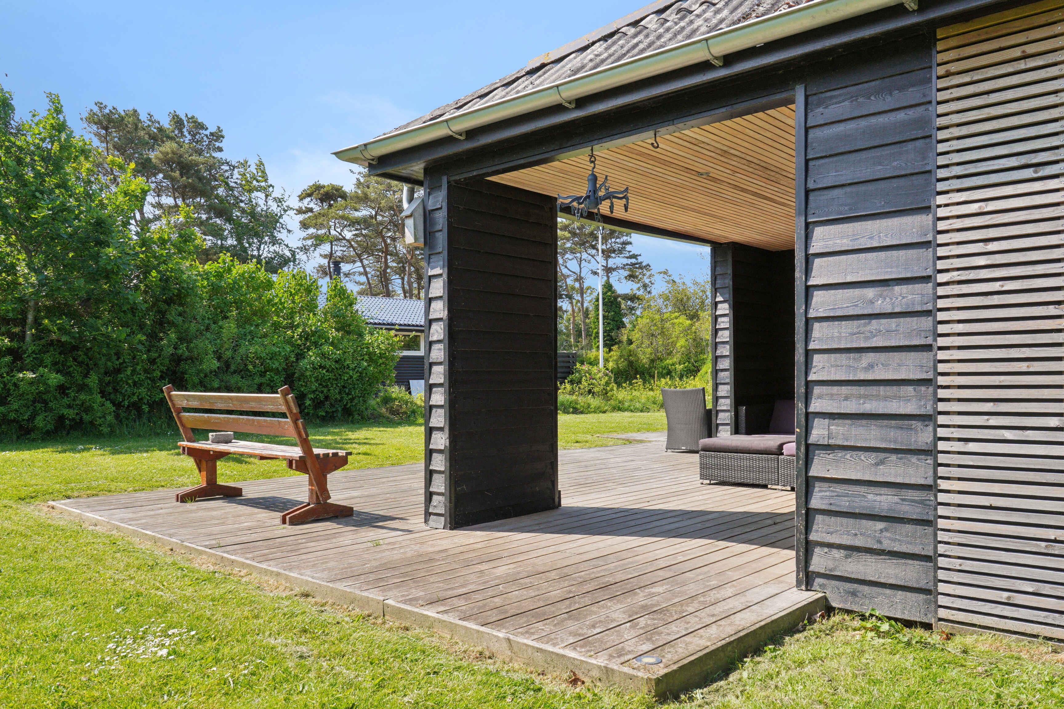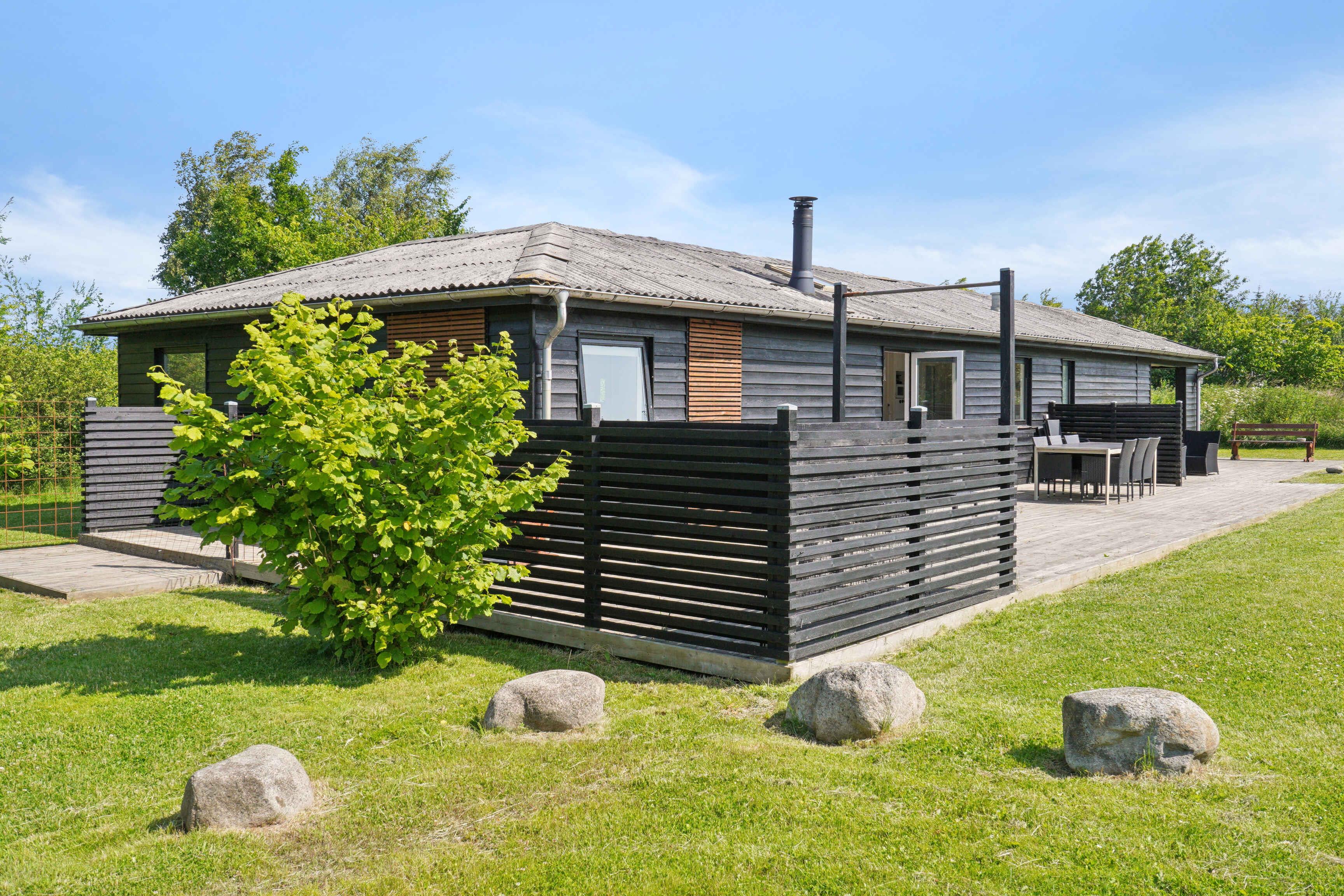Hyggeligt sommerhus nær strand og by med stor terrasse og moderne faciliteter til en afslappet ferie.