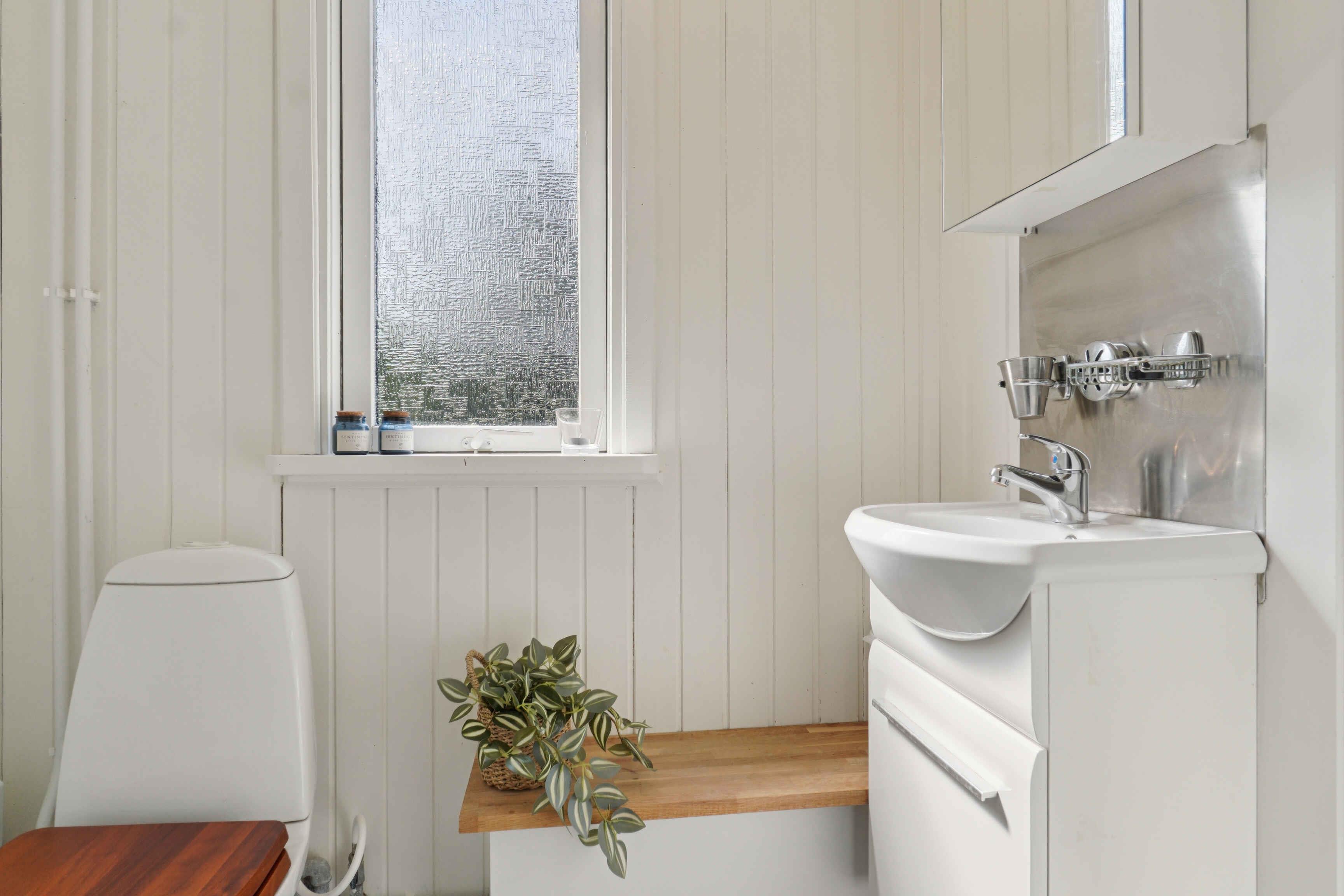 Dette sommerhus byder på afslappende rammer tæt på både strand og by. Med sine 81 m² rummer det fire soveværelser og i alt syv sovepladser, ideelt til familier eller mindre grupper. Indretningen er praktisk og indbydende med god opbevaringsplads og plads til samvær. Det gennemgående værelse ligger i forbindelse med stuen, hvor brændeovn og varmepumpe skaber en behagelig atmosfære året rundt. Køkkenet er åbent og funktionelt, så madlavningen let bliver en del af fællesskabet. Badeværelse med bruseniche og en entré fuldender planløsningen. Udendørsarealerne indbyder til ophold i solen, i skyggen eller i læ. Terrassen snor sig rundt om huset, og en overdækket del giver mulighed for udeliv i al slags vejr. Græsplænen egner sig til både afslapning og aktiviteter med børnene. Kun 400 meter væk venter en børnevenlig badestrand med fint sand og lavt vand – perfekt til varme sommerdage. Området er roligt og præget af natur, men du er også tæt på Frederikshavn med hyggelige caféer, butikker og færgeforbindelser til både Læsø og Sverige. Her får du det bedste fra begge verdener: naturoplevelser, fred og nærhed til byen. Uanset om ferien skal bruges på stranden, i skoven eller i byen, har dette sommerhus en ideel placering for en varieret ferie i det nordjyske. Obs, udlejes ikke til erhversmæssigt brug.