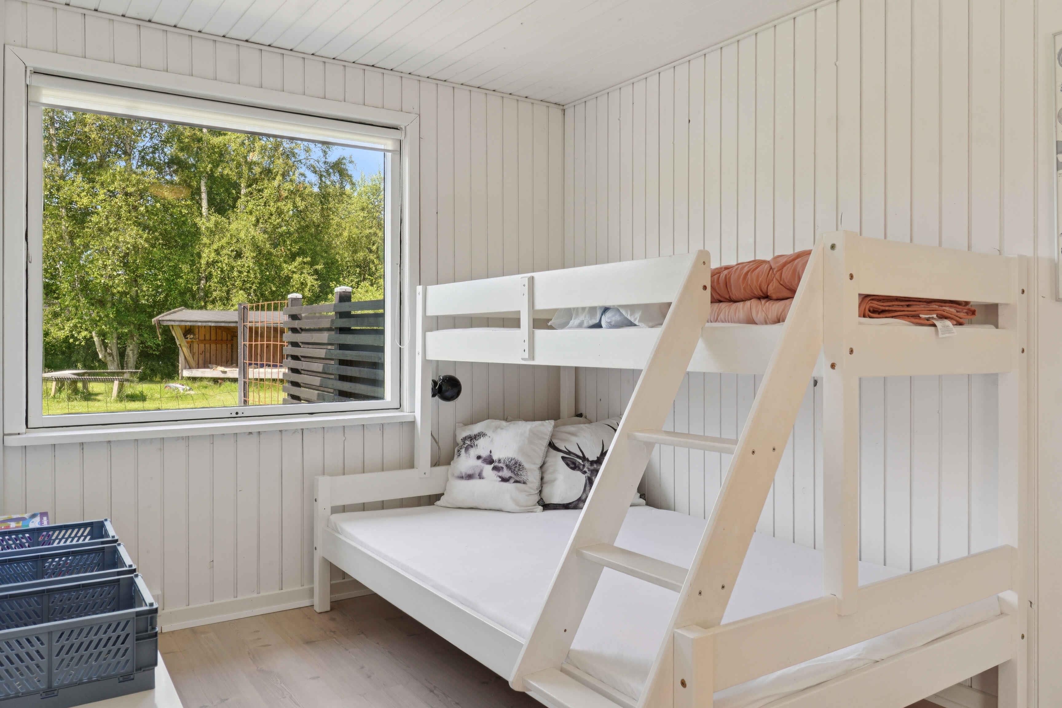 Velindrettet sommerhus med 4 soveværelser nær strand og by. Stor terrasse, god plads ude og inde. Tæt på børnevenlig badestrand og naturskønt område – perfekt til en afslappet ferie med både ro, aktiviteter og byliv i nærheden.