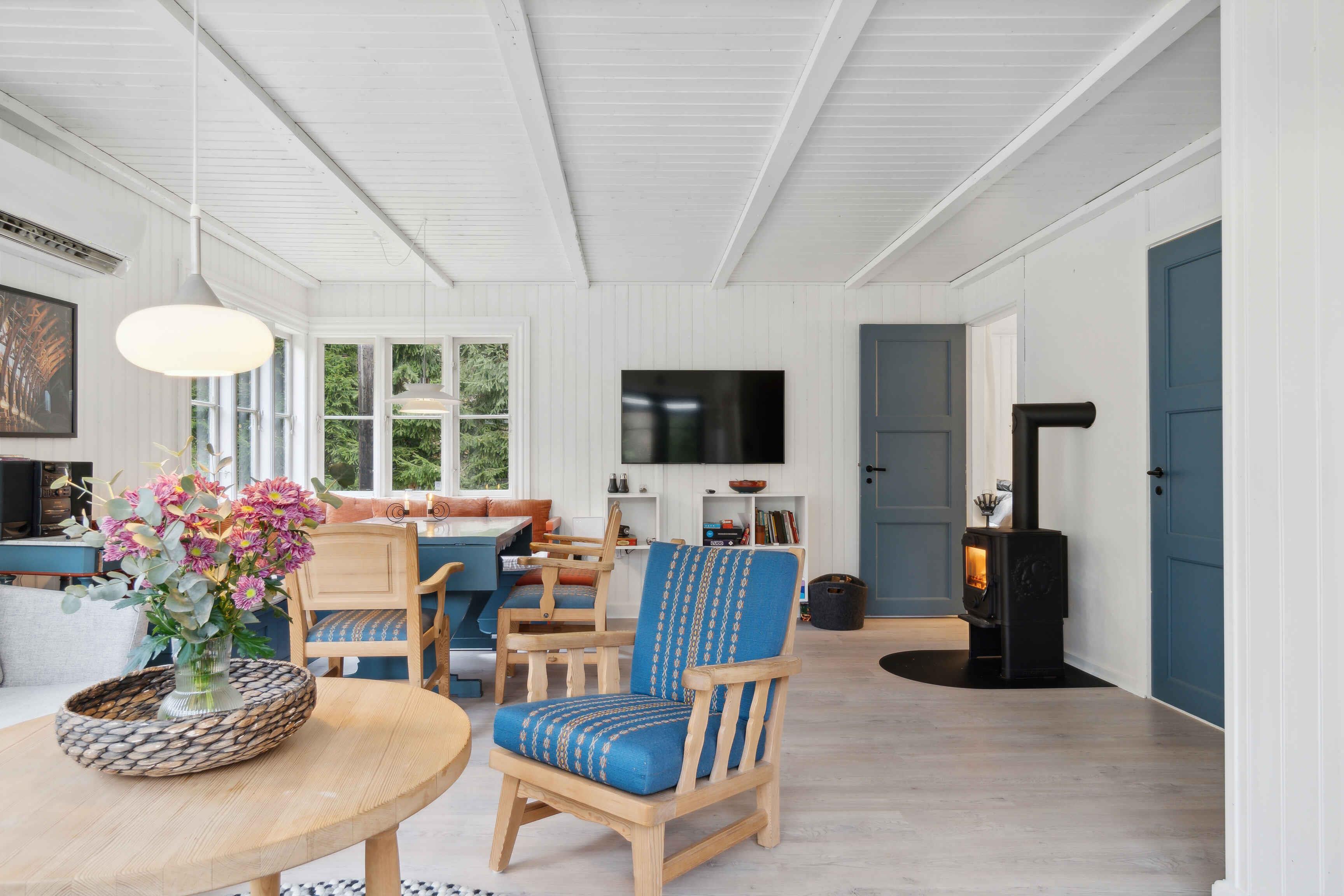 Dette hyggelige sommerhus byder på en afslappende ferie med plads til hele familien eller en vennegruppe på op til seks personer. Med to soveværelser og et anneks er der både privatliv og komfort. Boligens indretning er enkel og funktionel med et rummeligt badeværelse og en dejlig stue med brændeovn. Huset er godt udstyret med opvaskemaskine, internet og fjernsyn. Udenfor venter en stor, overdækket terrasse, perfekt til måltider i det fri og rolige stunder i naturen. Den 2200 m² store grund giver masser af plads til både afslapning og leg. Kun to kilometer væk ligger stranden, hvor I kan nyde en dag ved vandet. Der er også kort afstand til indkøb og restauranter, som gør det let at kombinere hjemlig hygge med lokale oplevelser.