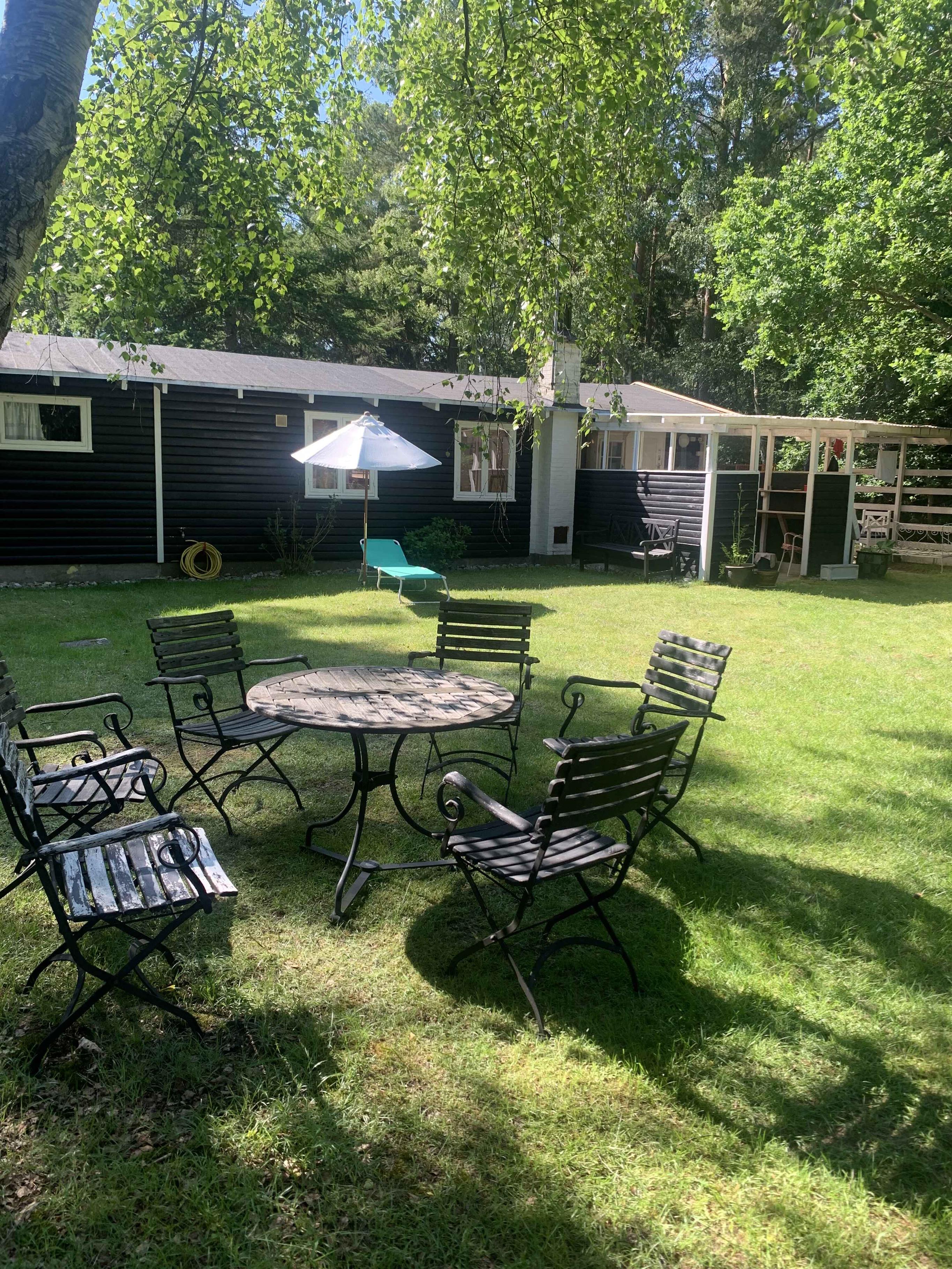 Hyggeligt og enkelt klassisk sort/hvidt sommerhus. Gå-afstand til områdets bedste købmand og bus mod Frederiksværk og Helsinge. Dejligt karbadeværelse, bål plads og overdækket terrasse med kul-grill