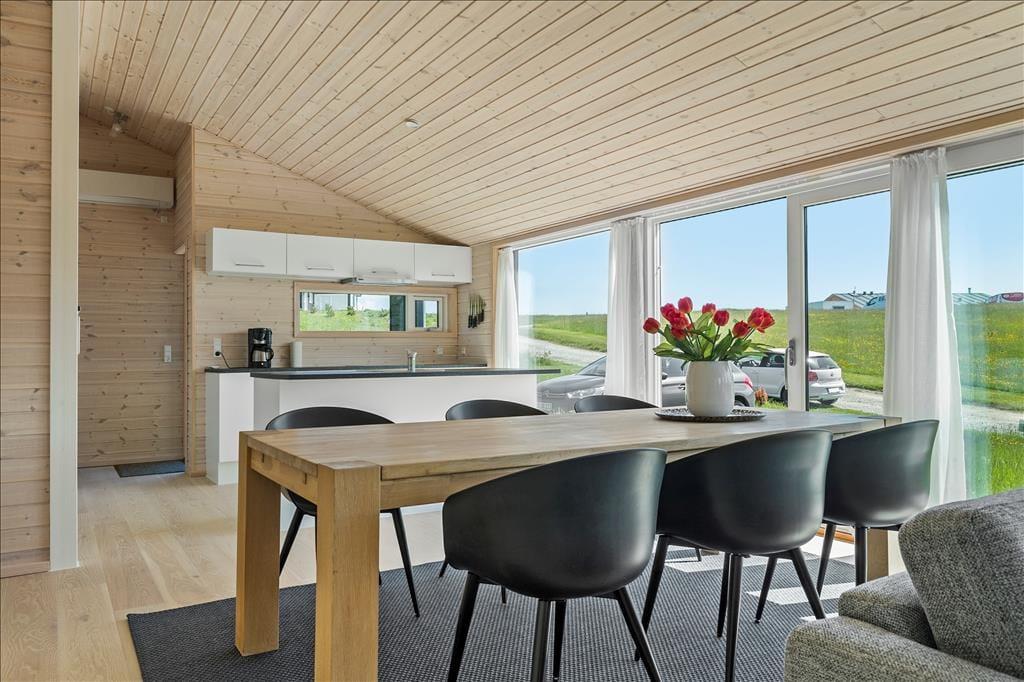 Træd ind i et lyst og hyggeligt feriehus, hvor der er tænkt på alle detaljer for at skabe rammerne for en afslappende ferie. Den velmøblerede stue med varmepumpe og udgang til en overdækket terrasse danner den perfekte base for hyggelige stunder. Køkkenet er flot og veludstyret, med direkte udgang til en åben terrasse, ideel til morgenkaffen under åben himmel. Med tre soveværelser med dobbeltsenge og skabsplads er der rigeligt med plads til hele familien. To moderne badeværelser med gulvvarme – hvoraf det ene har vaskemaskine – sikrer komfort for alle. Derudover byder huset på internet og Chromecast, så I kan streame jeres yndlingsfilm og serier efter en dag fyldt med oplevelser.