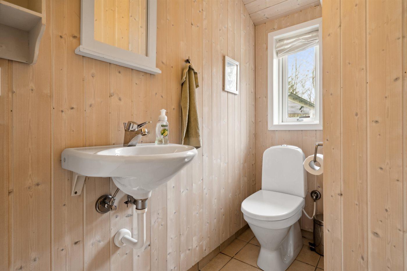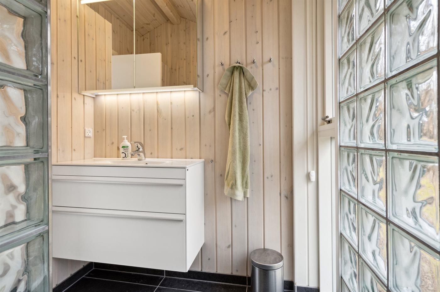 Der er 2 badeværelser med bruseniche og 3 toiletter, heraf 1 gæstetoilet. Der er gulvvarme på 2 badeværelser. Der er gulvvarme på gæstetoilettet. I saunaen er der mulighed for afslapning.