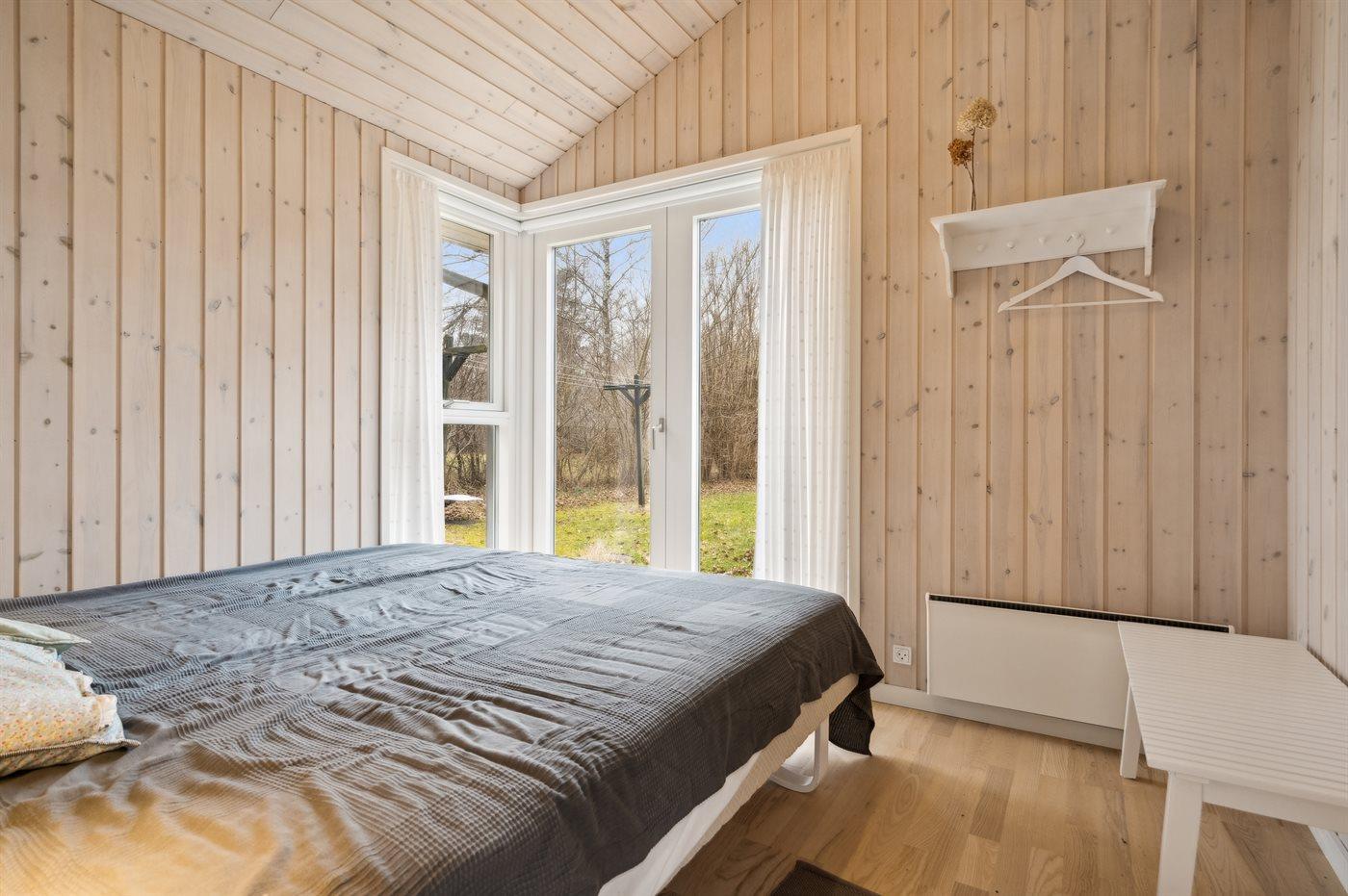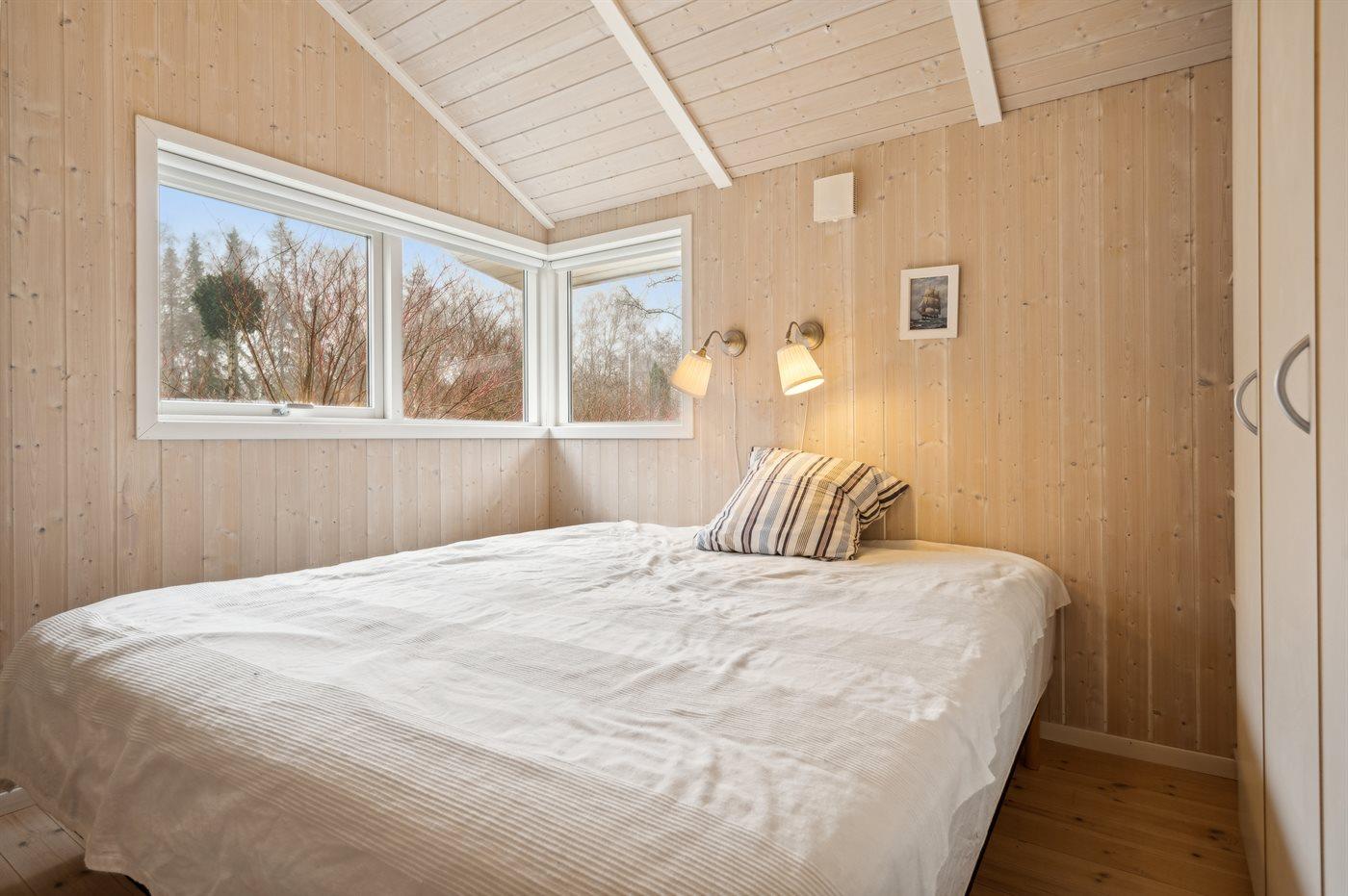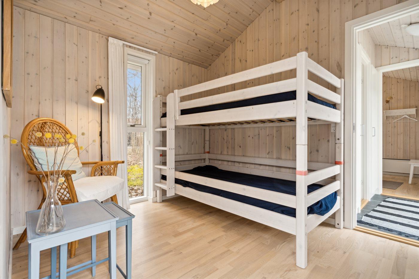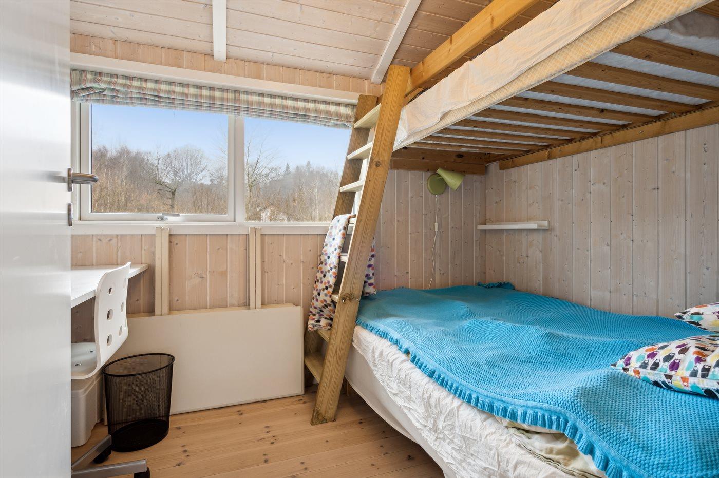 Der er i alt 5 soveværelser. Sovepladserne fordeler sig på: 6 sovepladser i dobbeltsenge. 4 sovepladser i køjesenge. 2 sovepladser på madrasser. 4 af disse sovepladser befinder sig i et anneks (fordelt på 2 soveværelser) og 2 af dem befinder sig på hemsen. Derudover er der 1 stk. barneseng.