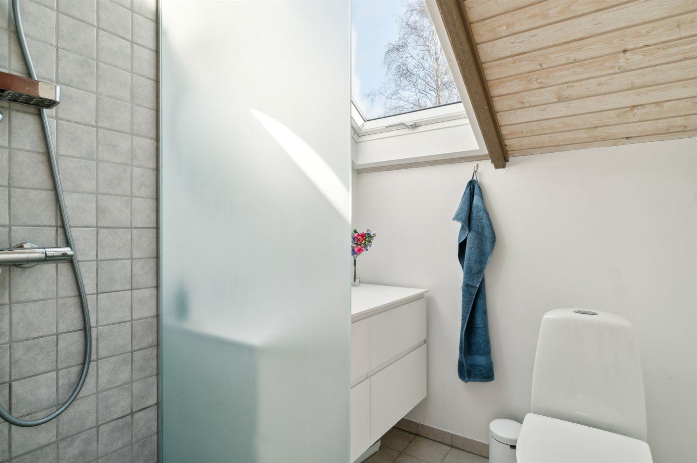 Der er 1 badeværelse med bruseniche og 1 toilet.. Der er gulvvarme på 1 badeværelse.