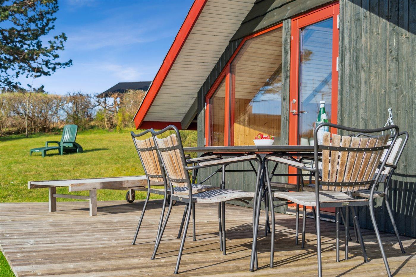 Ferieboligen er beliggende på en 1168 m² stor naturgrund. Der er 25 m til havet. Nærmeste forretning er beliggende i en afstand af 2000 m. Til ferieboligen hører åbent terrasseareal. Desuden er der overdækket terrasse. Shelter. Parkering ved ferieboligen.
