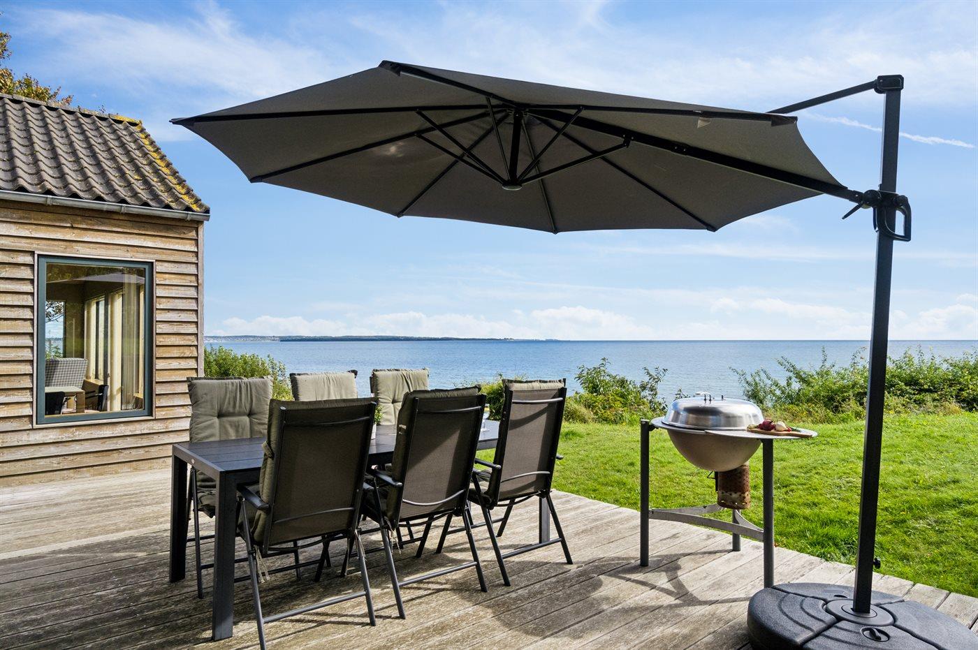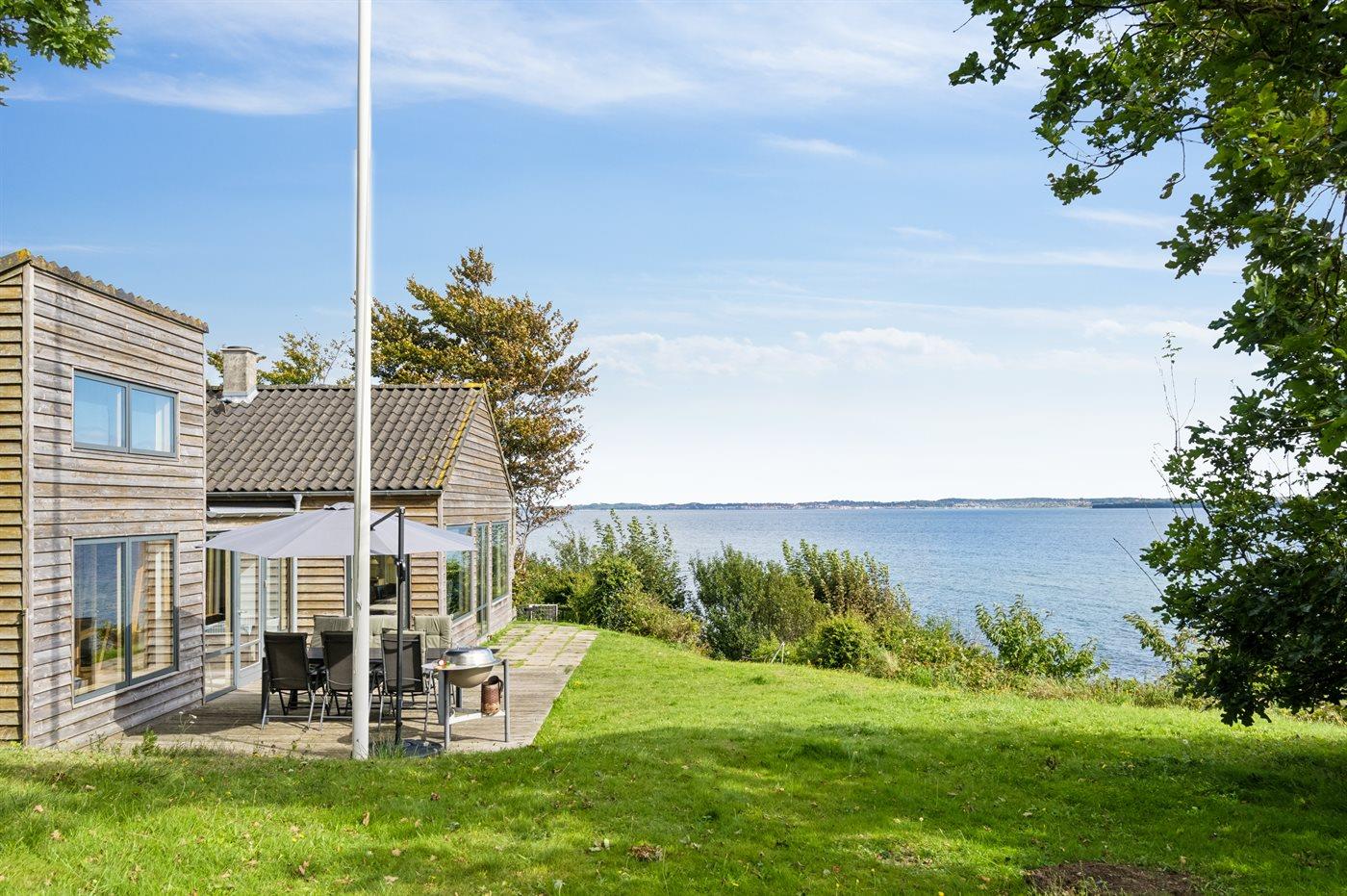 Skønt sommerhus i første række ved Fuglsø Strand med fantastisk havudsigt og egen adgang til sandstrand.