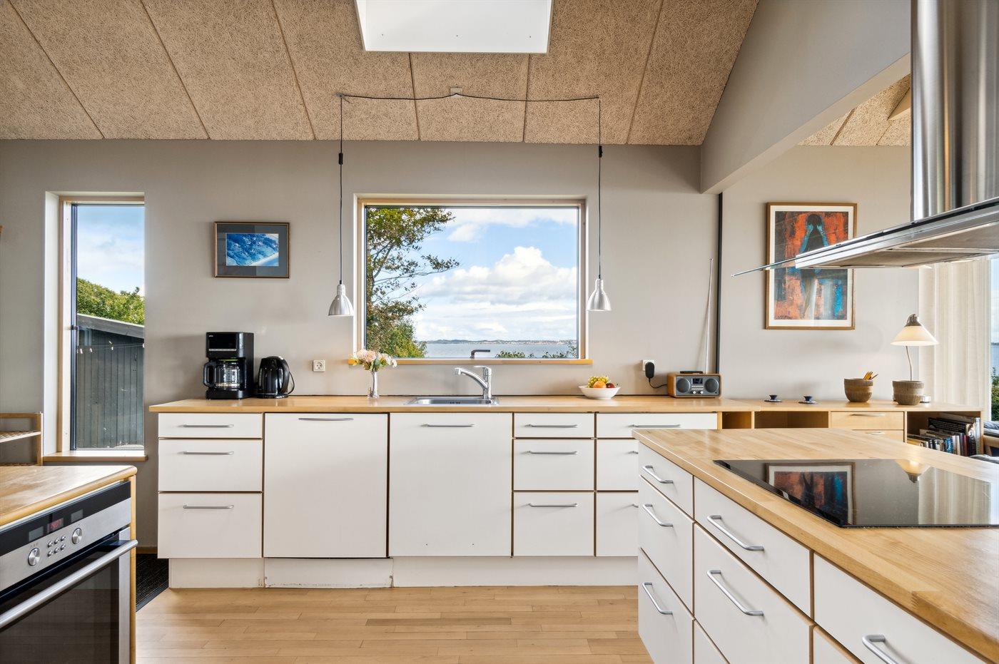 Køkkenet er udstyret med 1 køleskab. Der er 4 induktionskogeplader, varmluftovn, mikrobølgeovn samt opvaskemaskine.