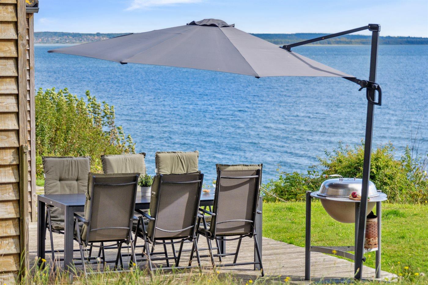 Skønt sommerhus i absolut første række ved Fuglsø Strand. Huset har den skønneste udsigt over Ebeltoft Vig og egen adgang til den fine sandstrand lige foran. Her kan man ikke undgå at blive betaget af udsigten.
