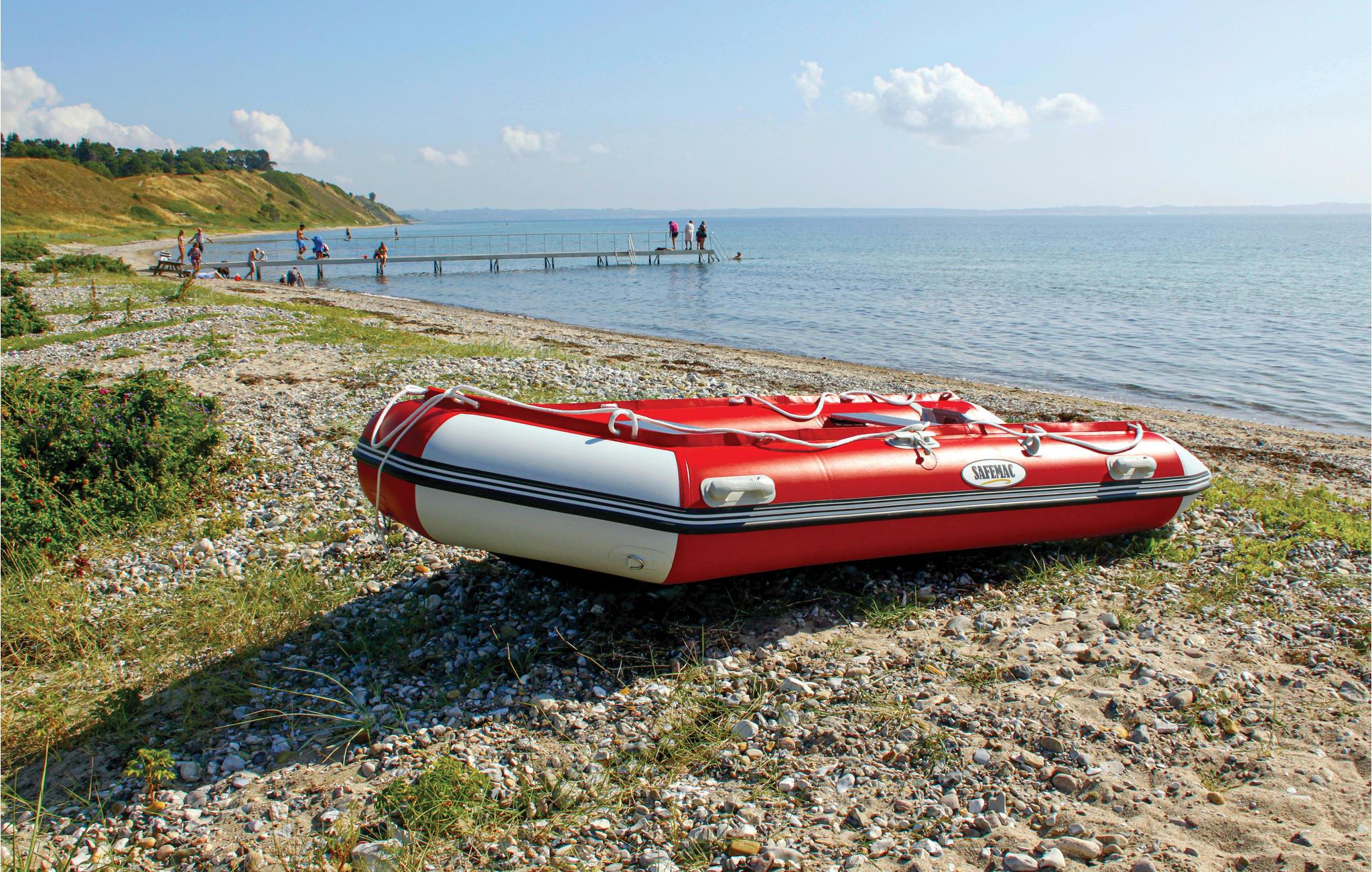 Topmoderne sommerhus med havudsigt nær Fuglsø Strand, ideelt til aktiv ferie med sauna og spabad.