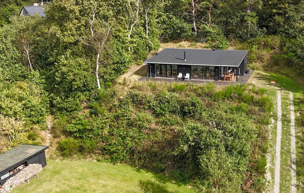 Der er enestående panoramaudsigt over store dele af Mols, Begtrup Vig og Knebel Vig fra dette feriehus, som ligger højt i området på en ugeneret 3000 m2 stor grund. Derfor vil et ophold uanset årstiden være en oplevelse tæt på naturen og havet.
