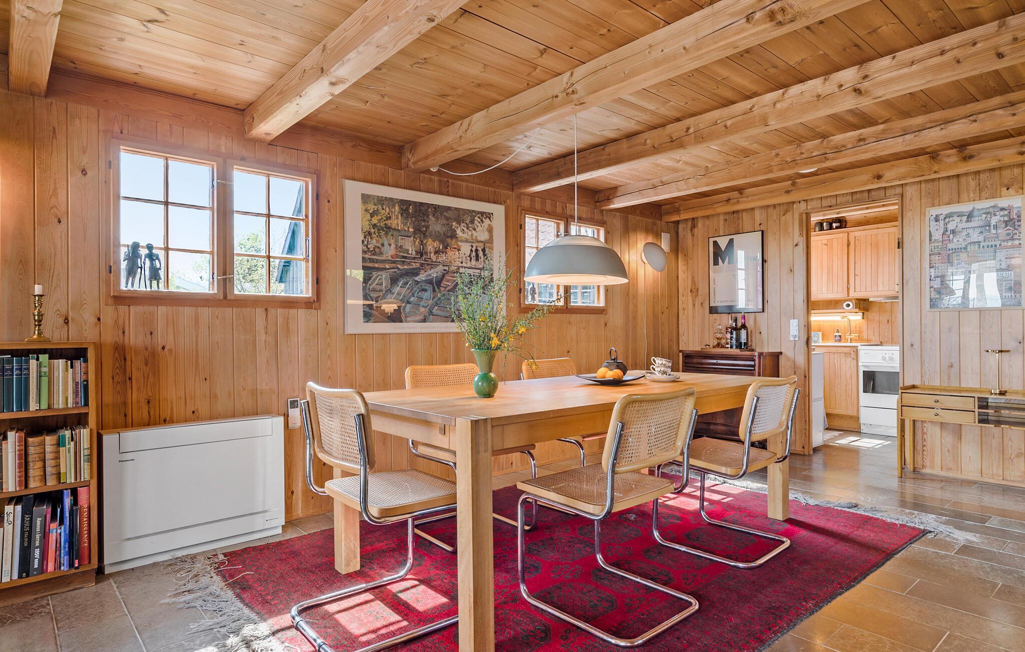 Tag familien under armen og rejs til Fuglsø, hvor I få skridt fra stranden får base i dette attraktive hus. Omgivelserne er allelunde dejlige, og indvendigt emmer det af hygge med varme træpaneler, delvist fritlagte stenmure og store vinduespartier, der giver et lækkert lysindfald og en fremragende udsigt over Fuglsø Vig. Hvis vejret viser tænder, kan I tænde op i pejsen og nyde dens varme knitren til madlavningen, måltiderne og aftenhyggen i stuen.
