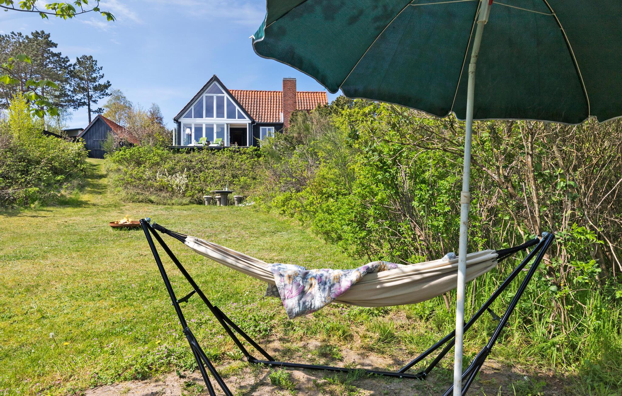 Udeområdet er mindst lige så dejligt og indbyder til leg, hygge og solbadning i lange baner, når vejret er godt. Huset ligger på en stor og ugeneret naturgrund, hvor børnene kan lege og gå på opdagelse, mens de voksne flader ud på terrassen og nyder udsigten, solen og en kølig drink i løbet af dagen. Ud på eftermiddagen kan I smide nogle gode bøffer på grillen, og måske I skal runde en smuk sommeraften af under stjernerne ved bålpladsen?