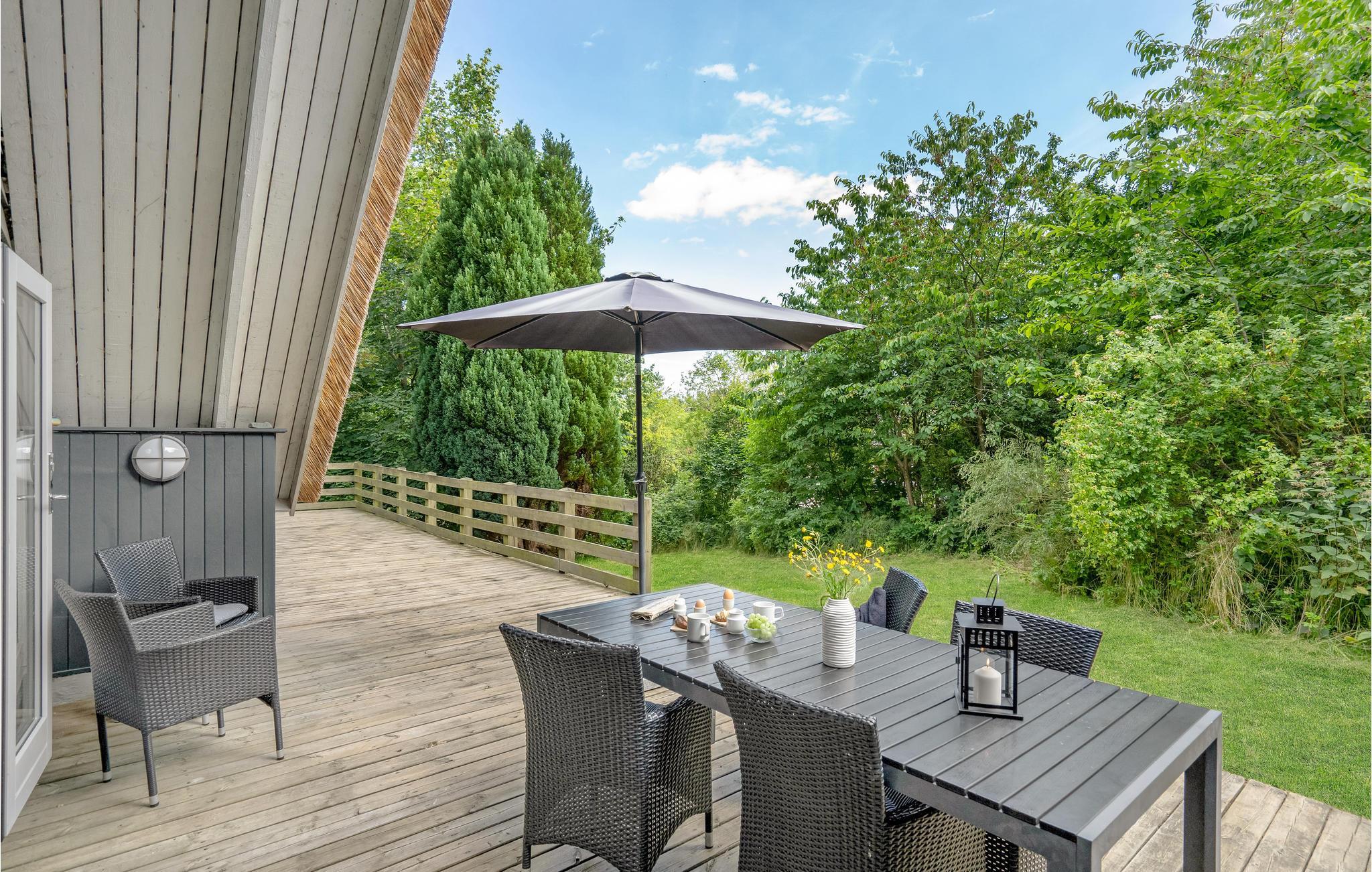 Dette skønne feriehus ligger på Mols, lige nord for den smalle tange Draget. Huset har en spændende arkitektur med dejlige, lyse rum og mange hyggekroge. Sæt jer med brætspil om aftenen og få varmen foran brændeovnen i de kolde måneder. Når solen er fremme, kan I sætte jer ud på en stor, flot terrasse og næsten svæve over græsplænen.