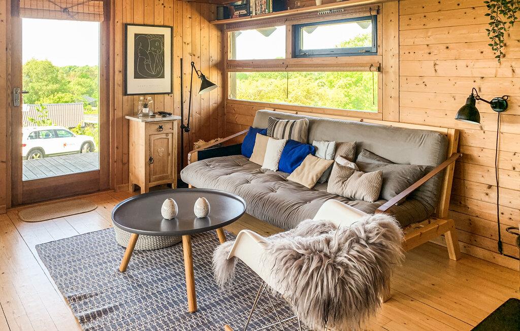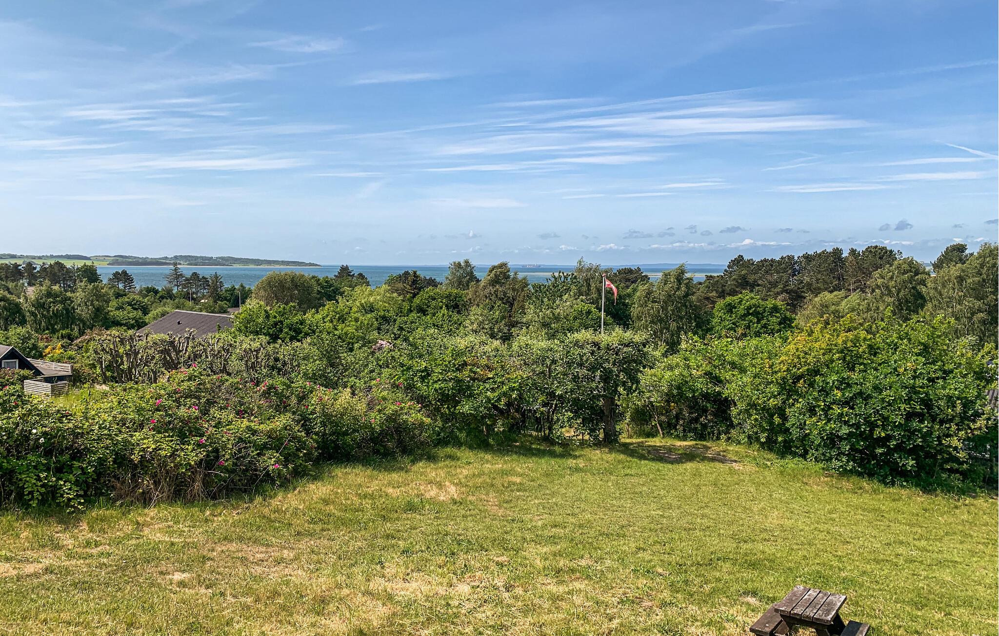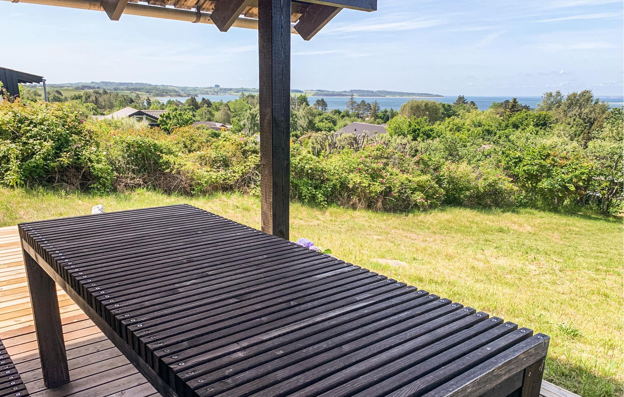 Charmerende træhus med panoramaudsigt nær Fuglsø Strand, perfekt til en fredelig og naturnær ferie.