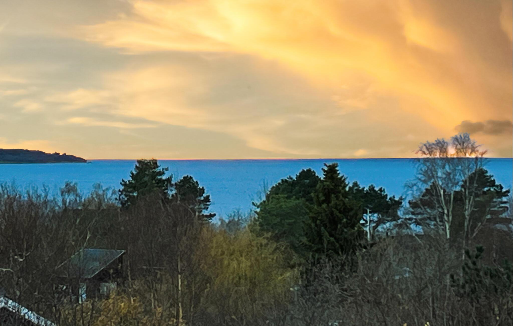 Hyggeligt træhus med panoramaudsigt ved Fuglsø Strand