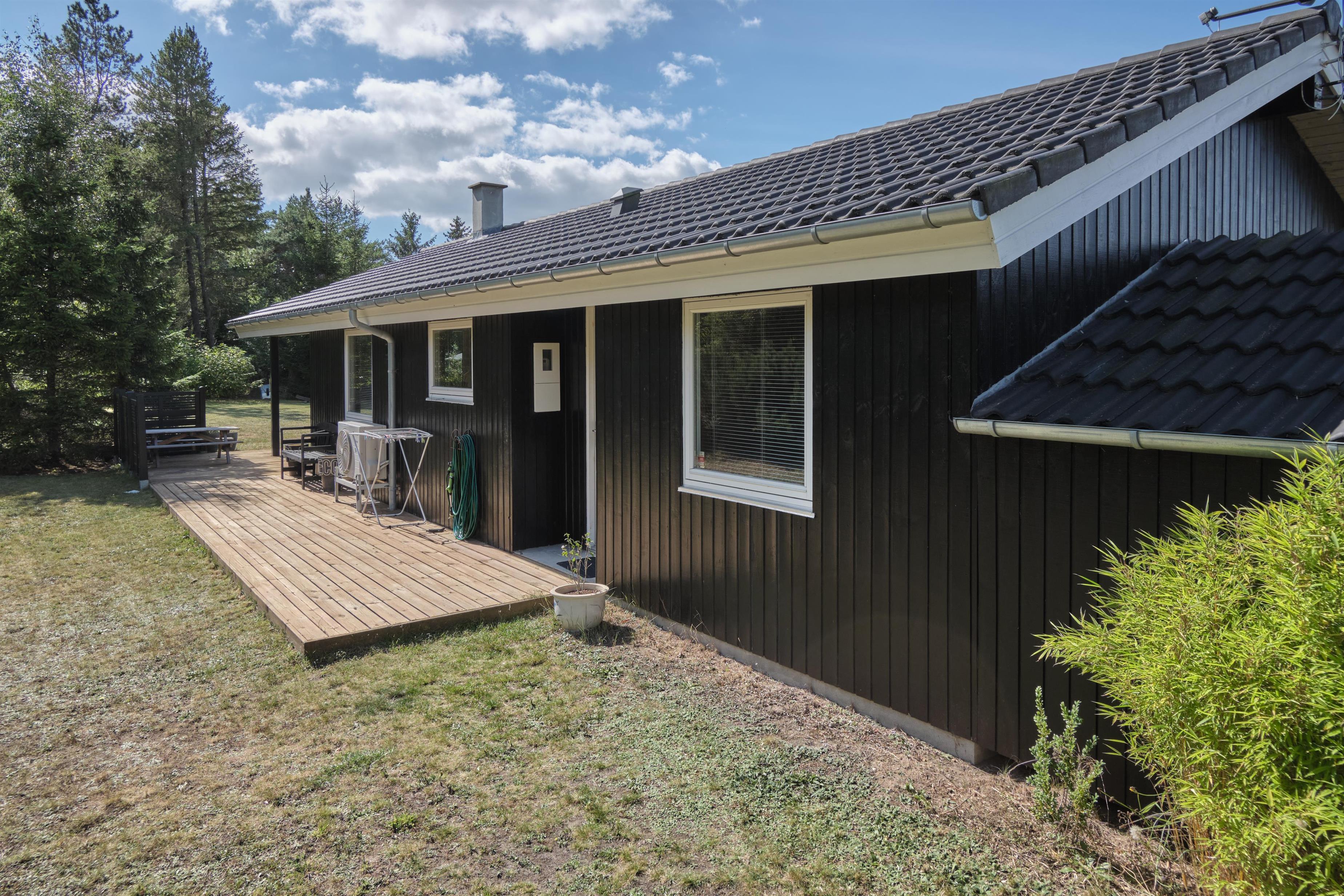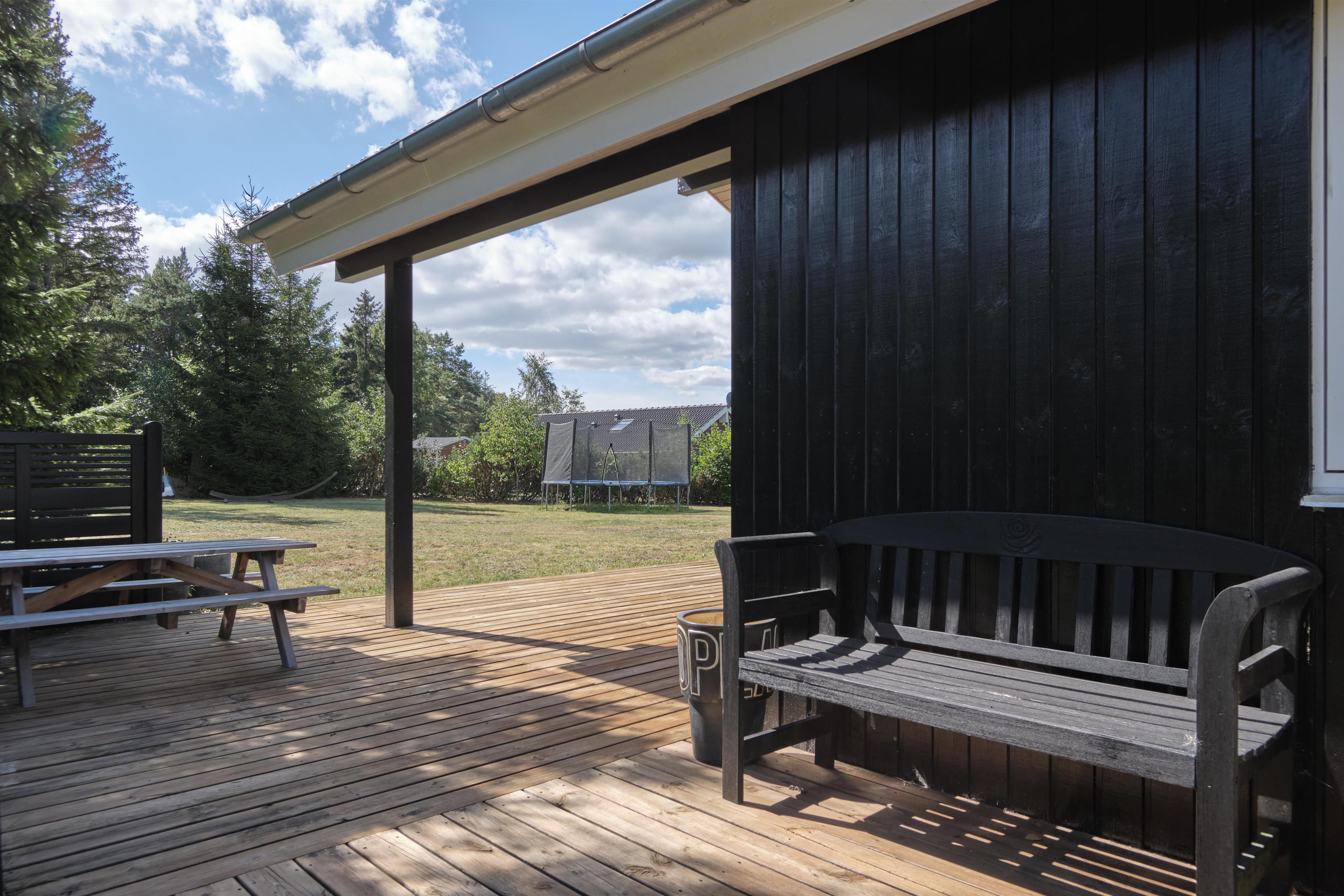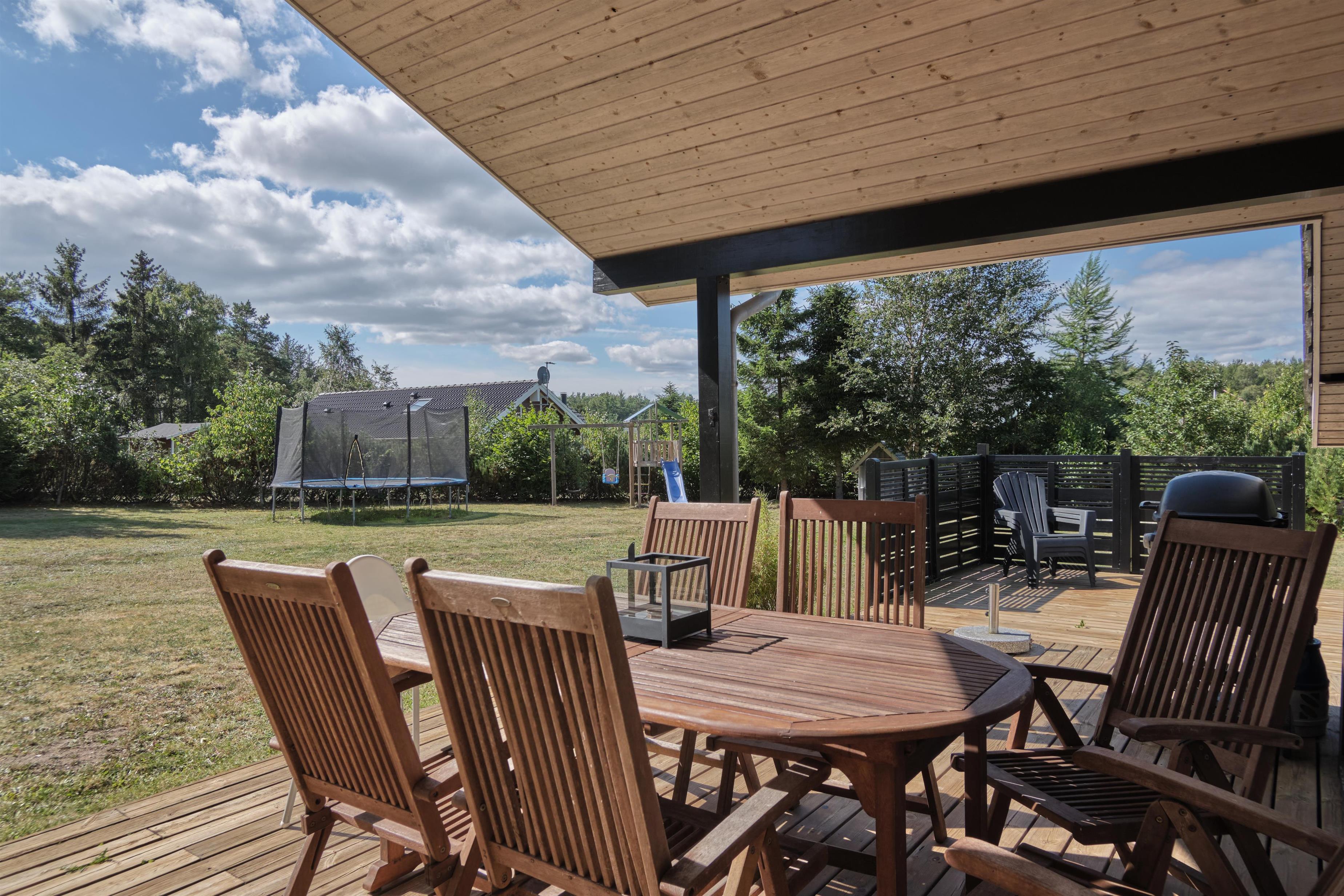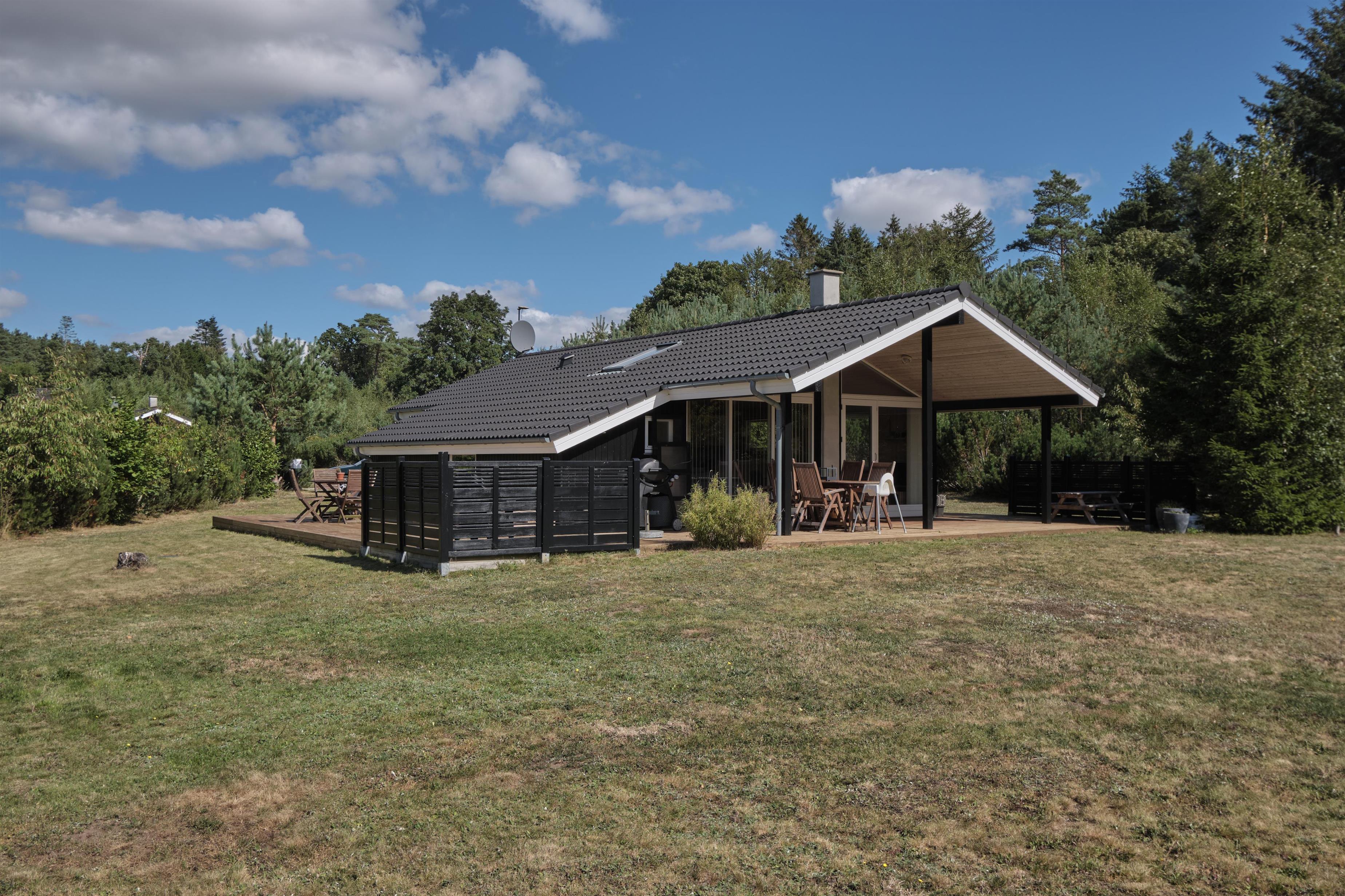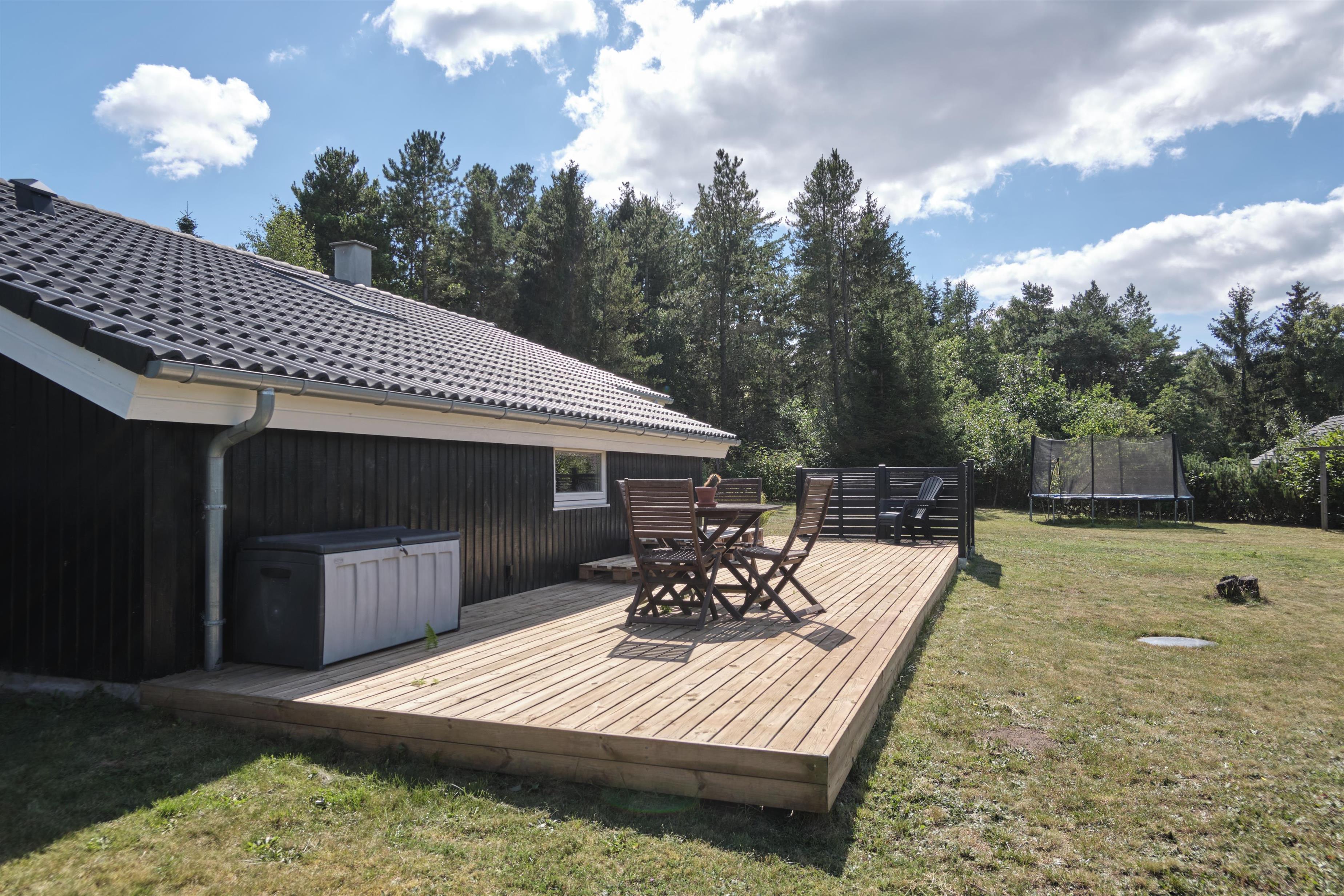 Dette dejlige feriehus er beliggende på stor, afskærmet naturgrund ved Fuglslev nord for Ebeltoft. Stor, flot og delvist overdækket træterrasse mod syd, vest og øst, hvor man kan nyde solen hele dagen. Her er havemøbler, liggestole, parasol og grill, og på grunden er der både sandkasse, trampolin og legeredskaber til børnene. Et rigtig godt valg for børnefamilien.