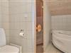 Huset fremstår overalt lyst og venligt med hvidpatinerede vægge og lofter til kip. Den velindrettede stue ligger i åben forbindelse med køkken og har brændeovn, god spiseplads til 7 personer, skønt sofahjørne, radio samt fladskærms-TV med chromecast – bemærk, at der ingen kanaler er tilkoblet, alt indhold skal streames fra PC eller andet medie. Godt, nyere køkken med komfur med keramiske kogeplader og ovn, køle-/fryseskab, opvaskemaskine og mikrobølgeovn. De 7 sovepladser fordeler sig på 2 store værelser med dobbeltseng og et lidt mindre værelse med dobbeltseng samt 1 enkeltseng/briks. Dejligt flisebadeværelse med gulvvarme, bruseniche, spabad og sauna samt vaskemaskine og tørretumbler. Der er internetadgang.