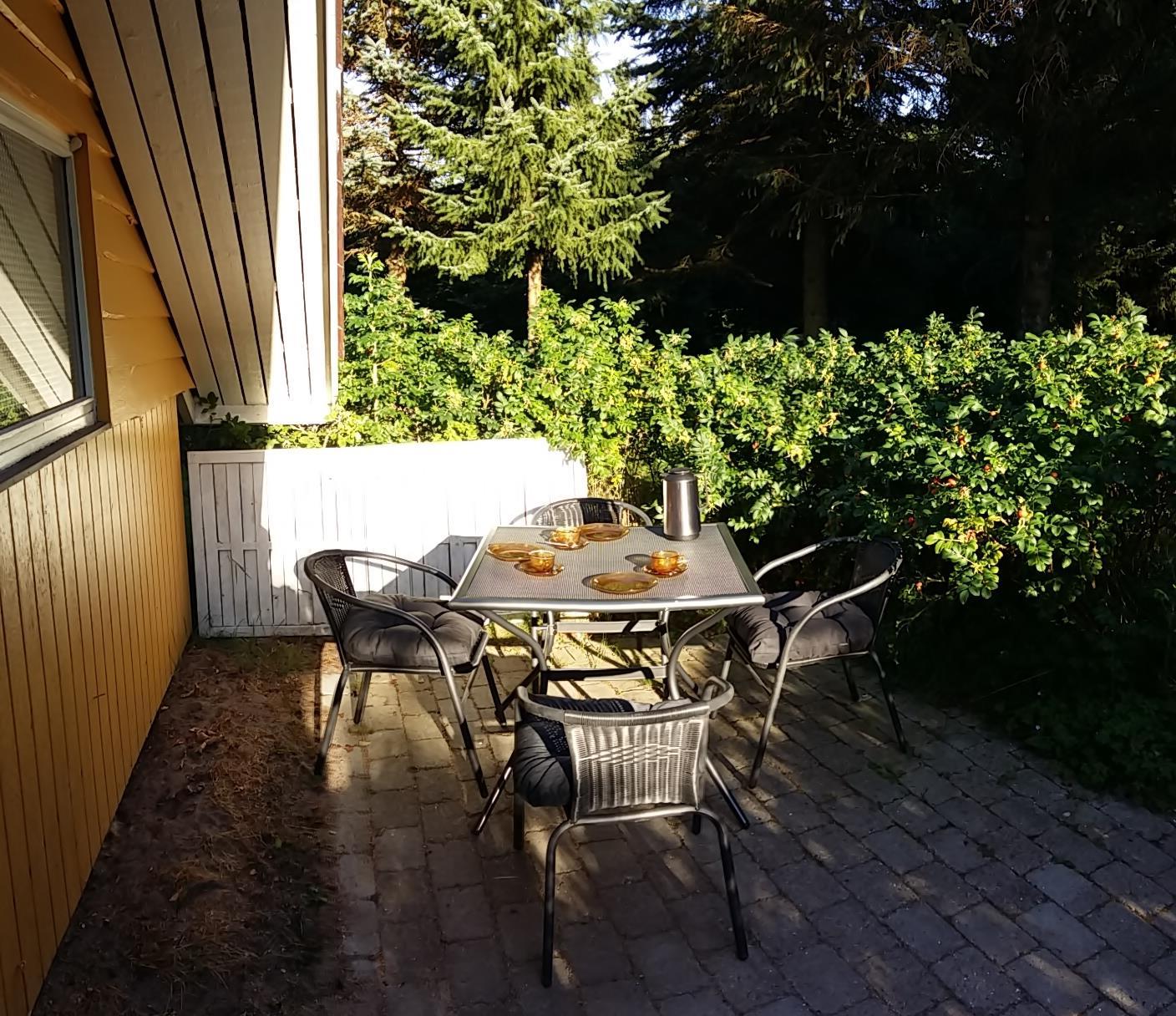 Hyggeligt sommerhus i naturskønne Fuglslev nær Ebeltoft med brændeovn, bålplads og to terrasser til afslapning.