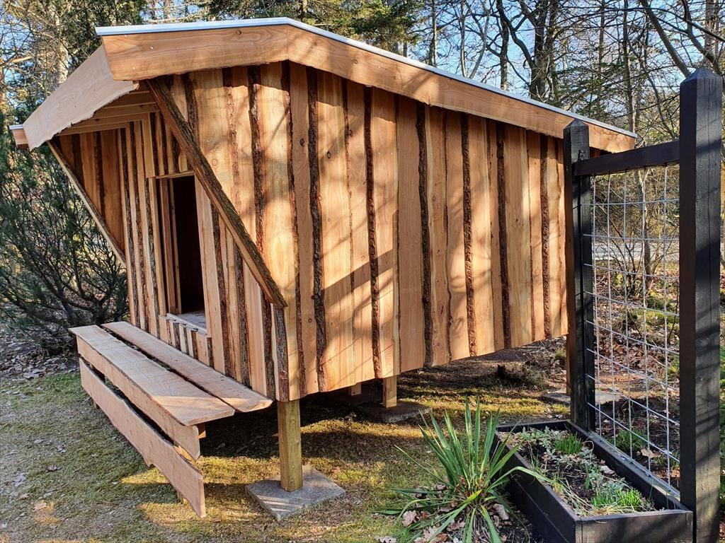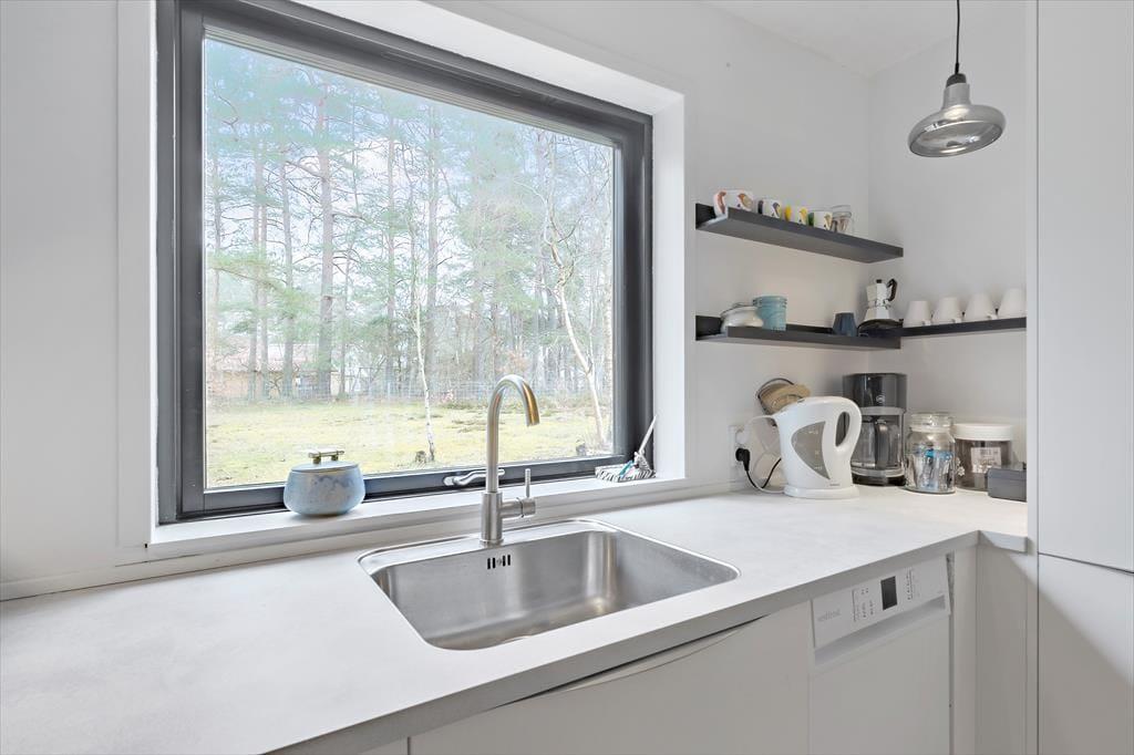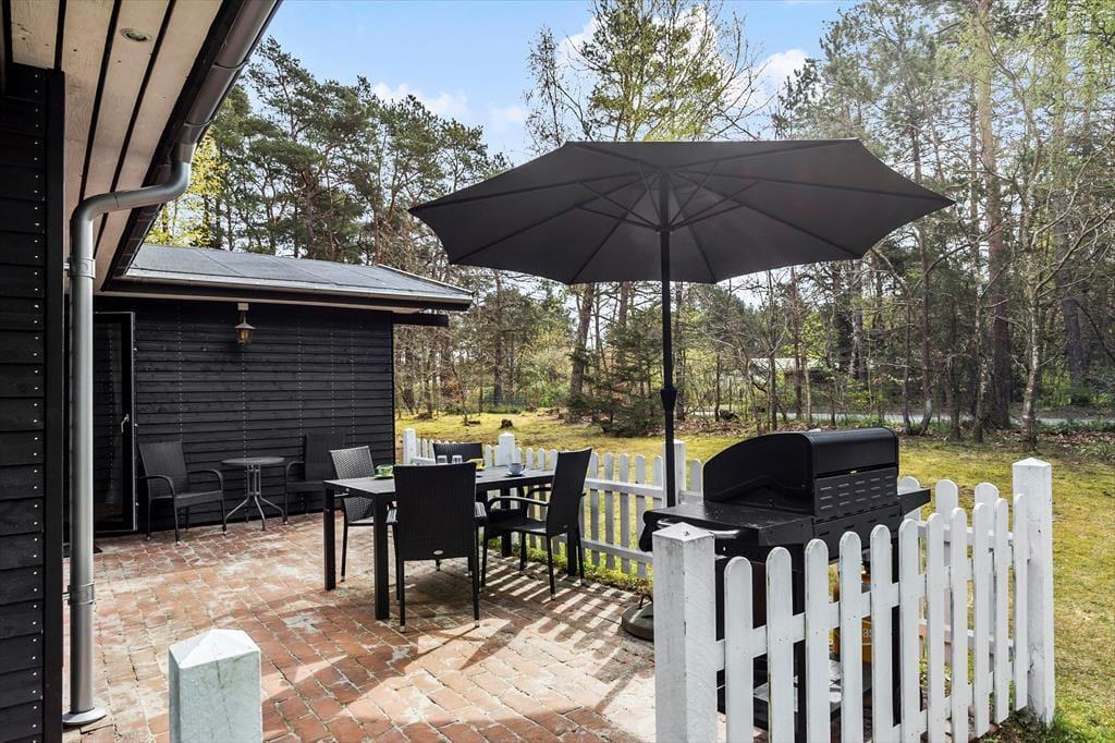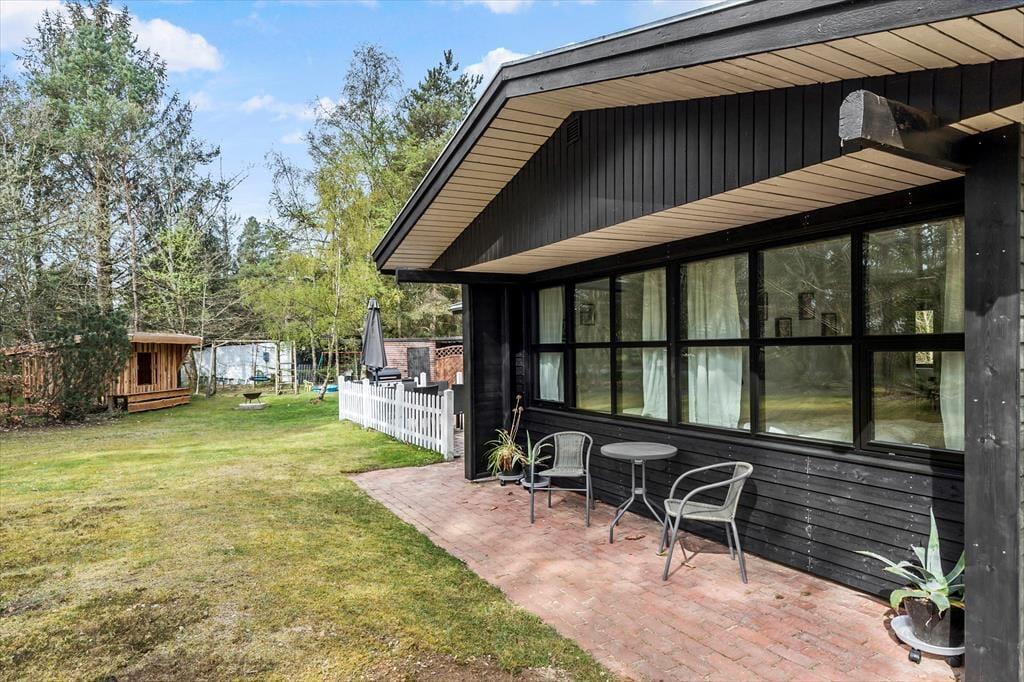 Den indhegnede skovhave er et sandt paradis for børn og hunde. Her kan børnene lege frit på plænen, i sandkassen eller gyngerne, mens de voksne tænder op i grillen eller nyder en kop kaffe i solen. Haven har også et shelter og bålsted, hvor hele familien kan samles til hygge og måske endda en nat under stjernerne.