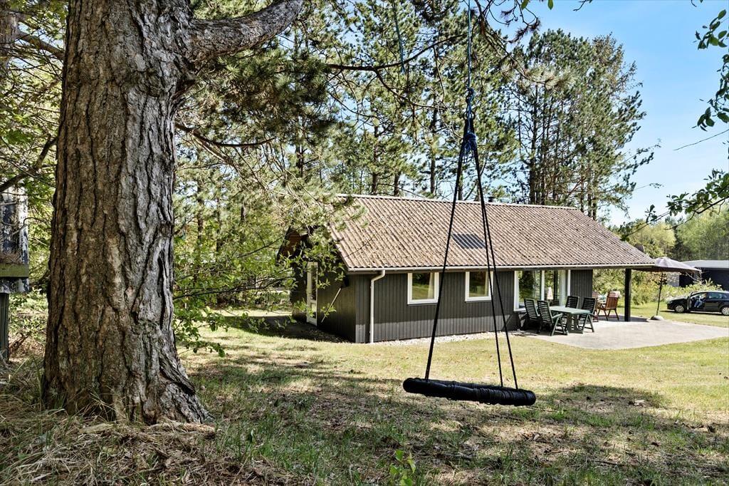 Den åbne skovhave er en lille oase, hvor børnene kan lege frit på plænen eller i gyngerne. Her er plads til boldspil, udendørs lege og hyggelige grillaftener – dog skal åben ild undgås på grund af områdets mange smukke træer. Du får følelsen af at være ét med naturen, samtidig med at der er alle muligheder for at nyde de lange sommerdage i haven.