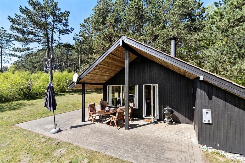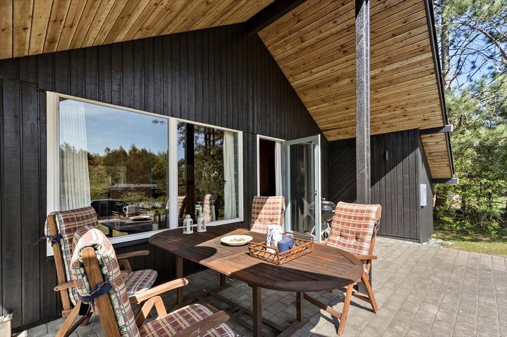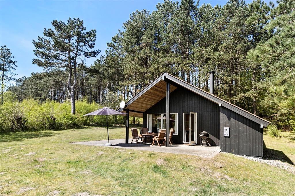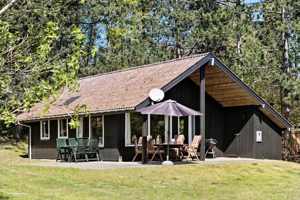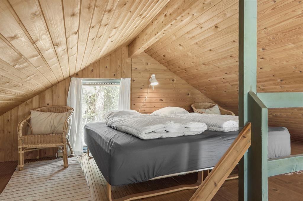 Træd ind i et hyggeligt og funktionelt feriehus, der straks får dig til at føle dig hjemme. Stuen er indrettet med komfortable møbler, en brændeovn, der spreder varme og hygge på de kølige aftener, samt direkte adgang til terrassen. Det dejlige køkken er yderst praktisk og ligger i åben forbindelse med spisepladsen, som er centralt placeret mellem køkken og stue. Her kan I samle familien til spil og hyggelige samtaler, mens maden tilberedes. Huset rummer tre fine soveværelser - et med dobbeltseng, et med køjeseng og et med dobbeltseng på hemsen – samt et funktionelt badeværelse, der opfylder alle behov.