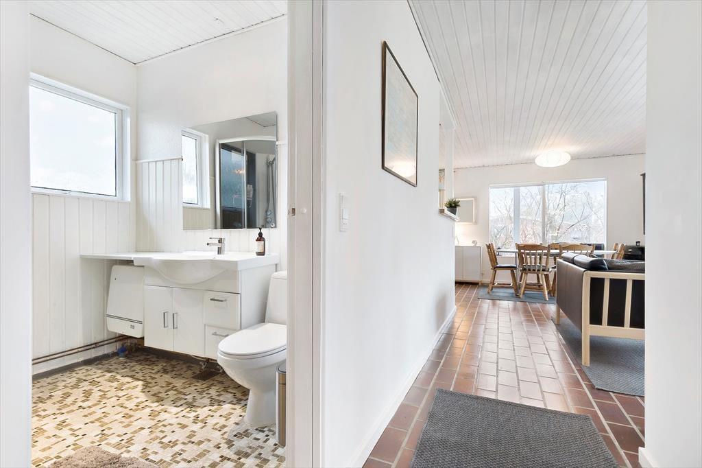 Ikke langt fra Ebeltoft finder du dette dejlige og hyggelige feriehus, der indbyder til en afslappende ferie for hele familien. Huset byder på en lys stue med både brændeovn og varmepumpe, der skaber en behagelig atmosfære året rundt. Fra stuen er der direkte udgang til en stor, skøn terrasse, hvor du kan nyde kaffen i morgensolen. I åben forbindelse med stuen finder du et funktionelt køkken og en hyggelig spiseafdeling, der gør det nemt at være sammen om madlavningen. Huset rummer desuden et dejligt badeværelse med bruseniche, to soveværelser og en alkove, som skaber ekstra sovepladser. Praktiske faciliteter som vaskemaskine og Chromecast til streaming af dine yndlingsserier er også til rådighed.