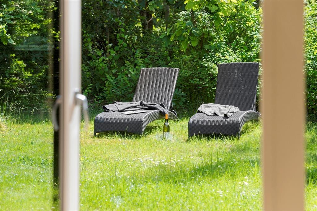 Haven er skabt til afslapning og ferieglæde året rundt. Her kan du tænde op i udepejsen og riste skumfiduser på en kølig aften, nyde morgenkaffen i solen eller samle familien til grillhygge på den overdækkede terrasse. Liggestolene på græsplænen indbyder til en lur i solen, og de store, åbne arealer gør det nemt at lege og boltre sig. Uanset om du vil have ro og fordybelse eller hygge med familien, finder du den perfekte krog i denne skønne have.