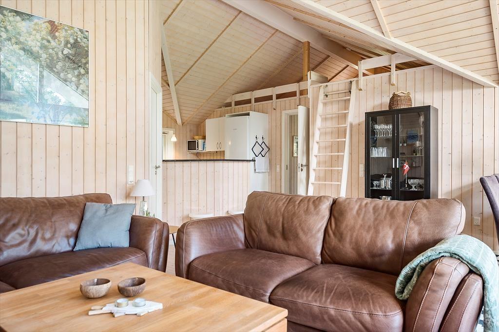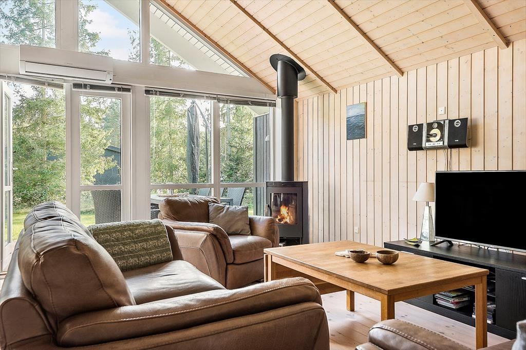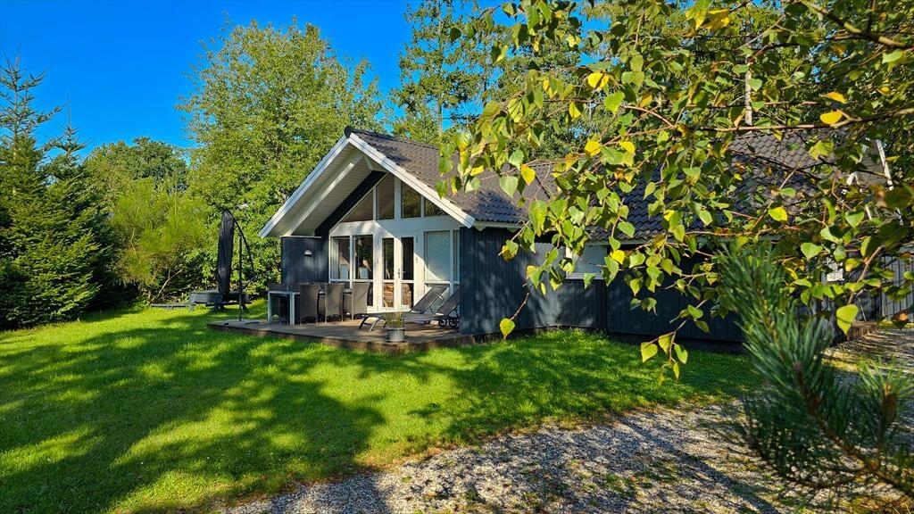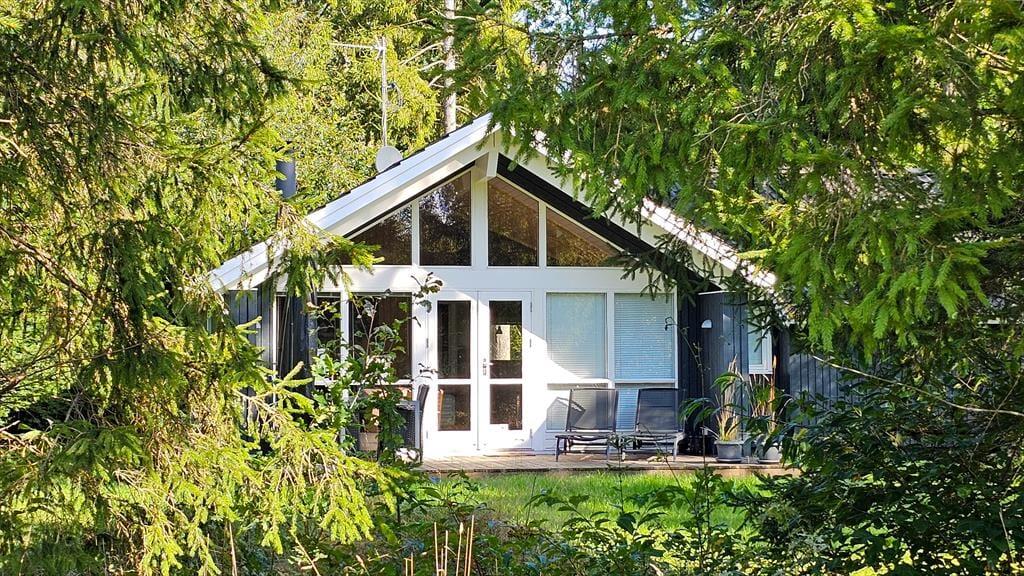 Når du træder ind i dette indbydende feriehus, mødes du af lyse og rummelige omgivelser med en skøn atmosfære. Stuen er hjertet af huset, hvor komfortable møbler, en brændeovn og store vinduer giver dig både hygge og en smuk udsigt til den omgivende natur. Det veludstyrede køkken står klar til at inspirere til fælles madlavning, mens det store spisebord danner rammen om hyggelige måltider. Med flere soveværelser og et badeværelse med bruser er der plads til, at alle kan finde deres egen lille oase.