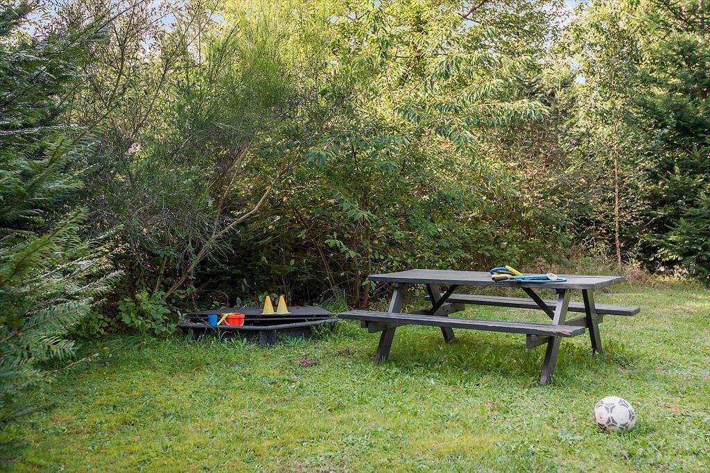 Udenfor er der masser af plads til at slappe af, lege og hygge sig med børnene. Den store terrasse er perfekt til lange sommeraftener med grillmad, mens børnene kan lege på græsplænen. Ferier her giver mulighed for at nyde den friske luft med en bog i hånden, en kop kaffe eller bare sidde og lytte til fuglene, der synger. Med haven som din personlige oase kan du både finde ro i naturen og nyde solens varme stråler.