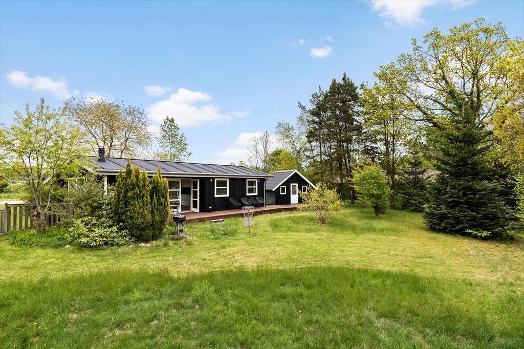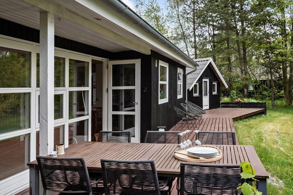 Når du kører til huset, får du en fornemmelse af, at du kører i en skov. Her er ro og fred i lange baner. Gode havemøbler på delvist overdækket terrassen og grill. Foran huset er der også en åben terrasse, så der er flere muligheder for at finde solen og nyde den.