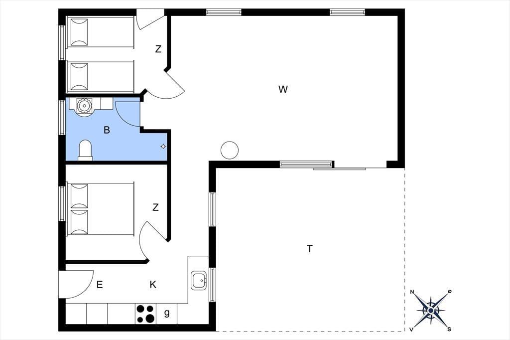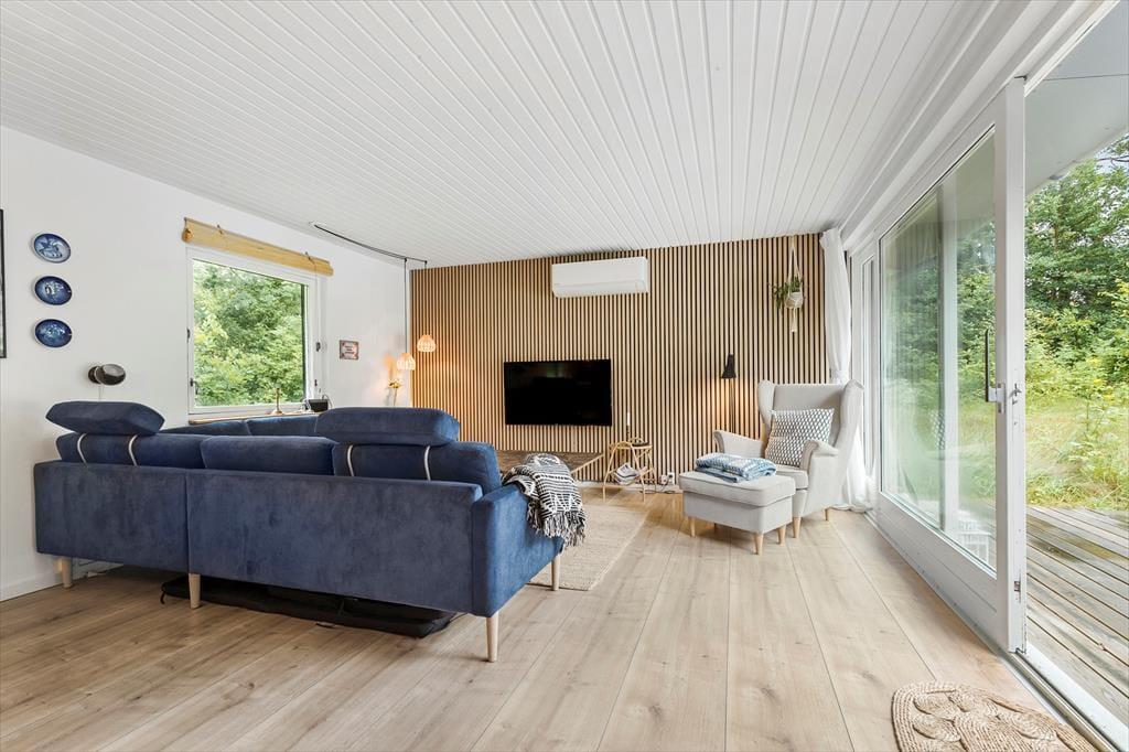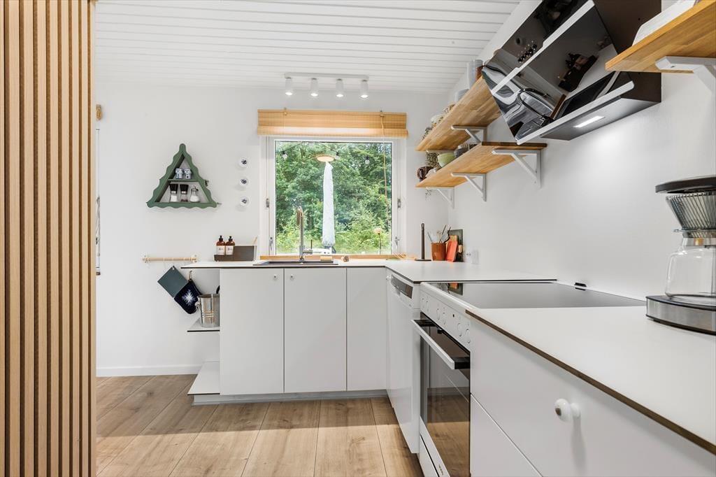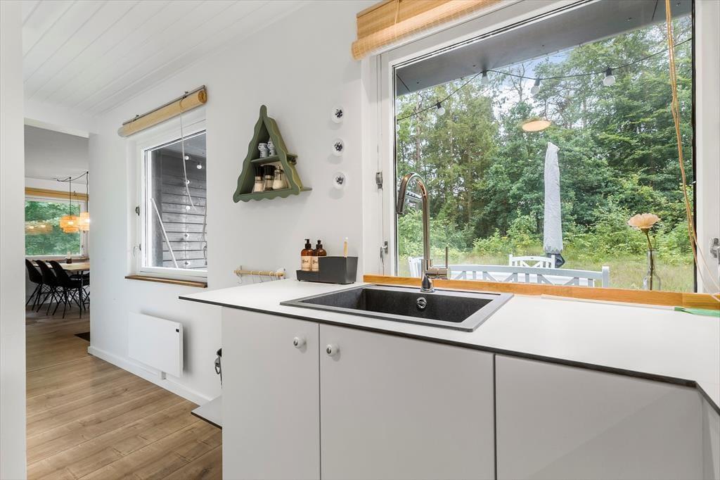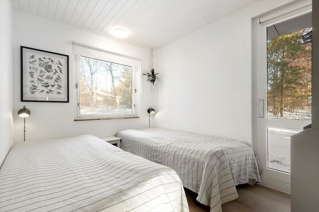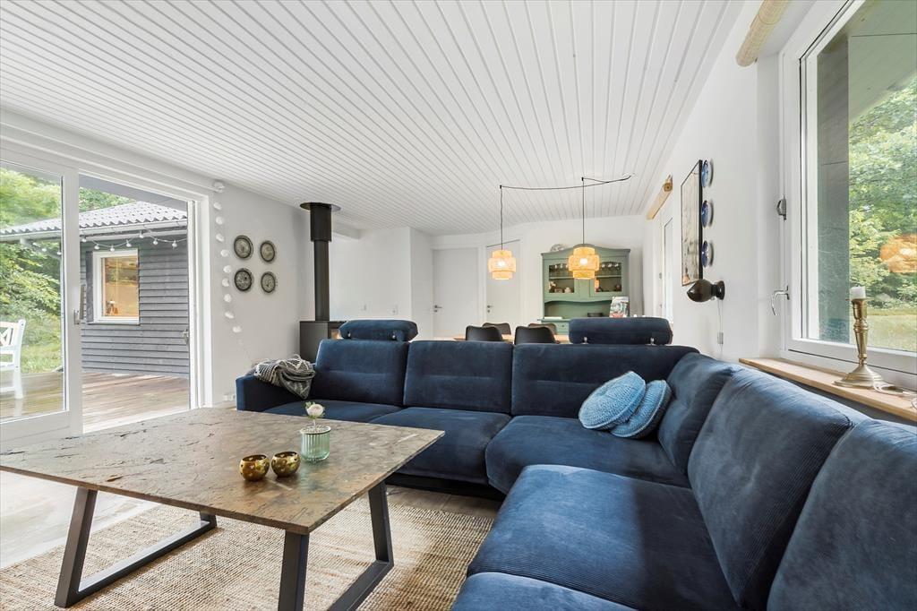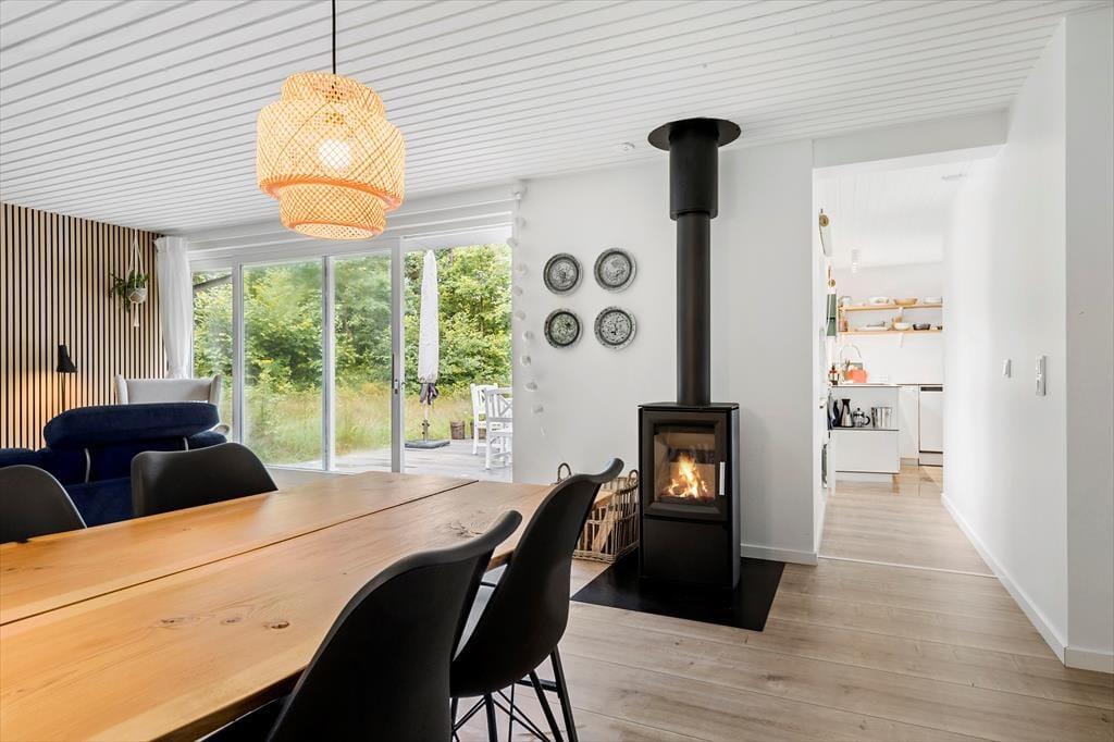 Velkommen til dette dejlige hus, hvor der virkelig er gjort noget ud af indretningen og stilen. Huset er specielt, smagfuldt og hyggeligt indrettet. Indgang i lille entre, der fører til stor og herlig stue med ”slap af” møbler, hvor du kan nyde brændeovnen knitre, se tv, læse en god bog eller bare sludre med familie og venner. Stuen ligger i delvis åben forbindelse med køkkenet. Køkkenet er funktionelt og stemningsfuldt og her er, hvad du skal bruge til at trylle dejlig feriemad frem. Spisestuen har et dejligt langbord, udsigt til haven samt udgang til lækker terrasse. Fra stuen er der adgang til 1 dejligt badeværelse, der er lige så stemningsfulde som resten af huset. Der er 2 værelser, hvor det ene er med dobbeltseng og det andet værelse med 2 enkeltsenge.
