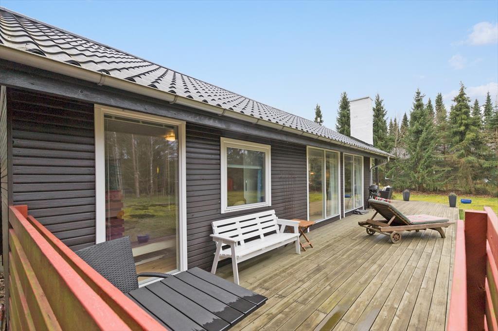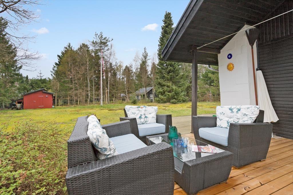 Huset har en stor dejlig lukket grund med god plads til de små- og også til de store børn. På terrassen kan du læse en bog, se efter børnene og nyde den ro, som området byder på. Den findes ikke mange andre steder. Har du hunden med er den også velkommen og kan løbe frit rundt på grunden.