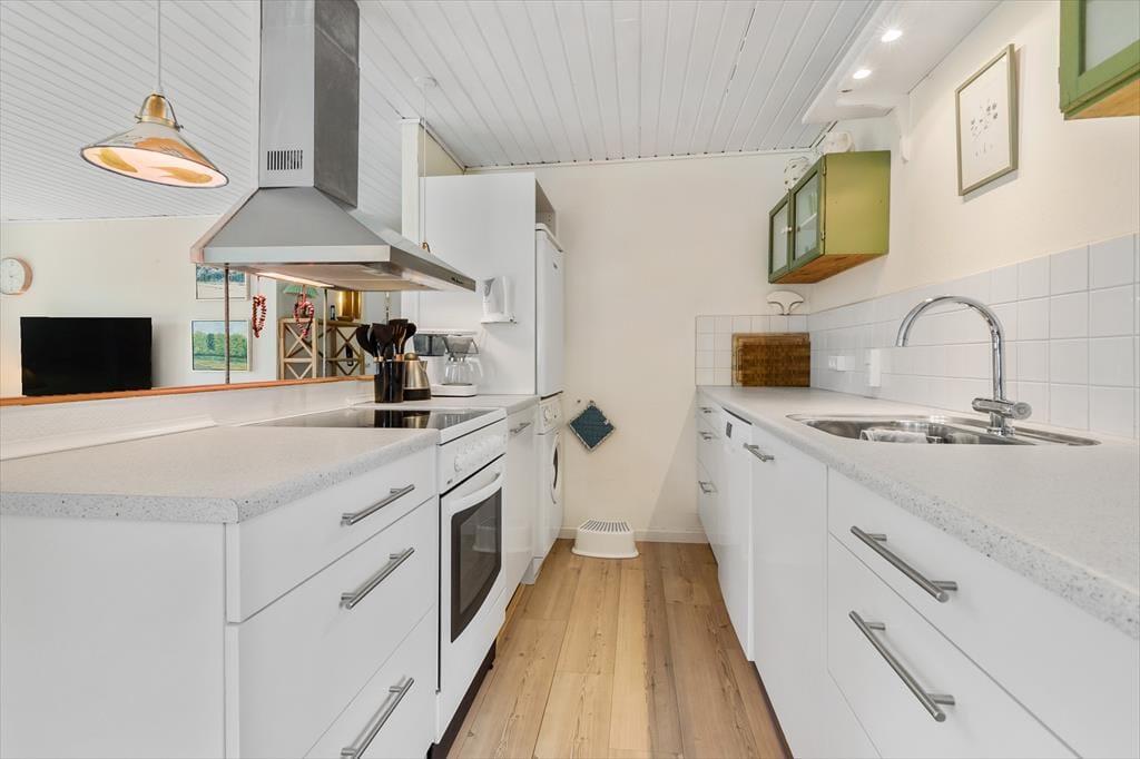 Dette hus er til den lille familie eller bare et par, som ønsker sig et velbeliggende feriehus i fredelige omgivelser. Her er alt hvad du skal bruge og har du en god bog med eller spil er det bare med at komme i gang. Stuen og køkkenet ligger i åben forbindelse og derfor kan alle deltage lige meget om der skal laves mad eller spilles spil.