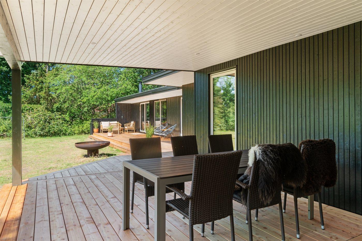 Til huset hører et dejligt og til dels overdækket terrasseareal, hvor man kan tilbringe mange timer i det fri.