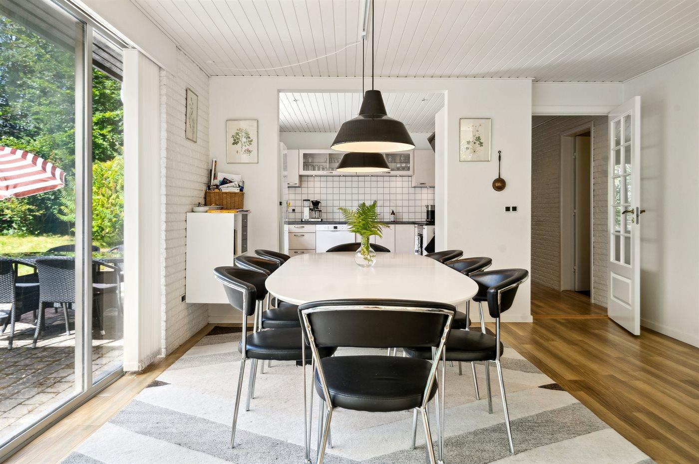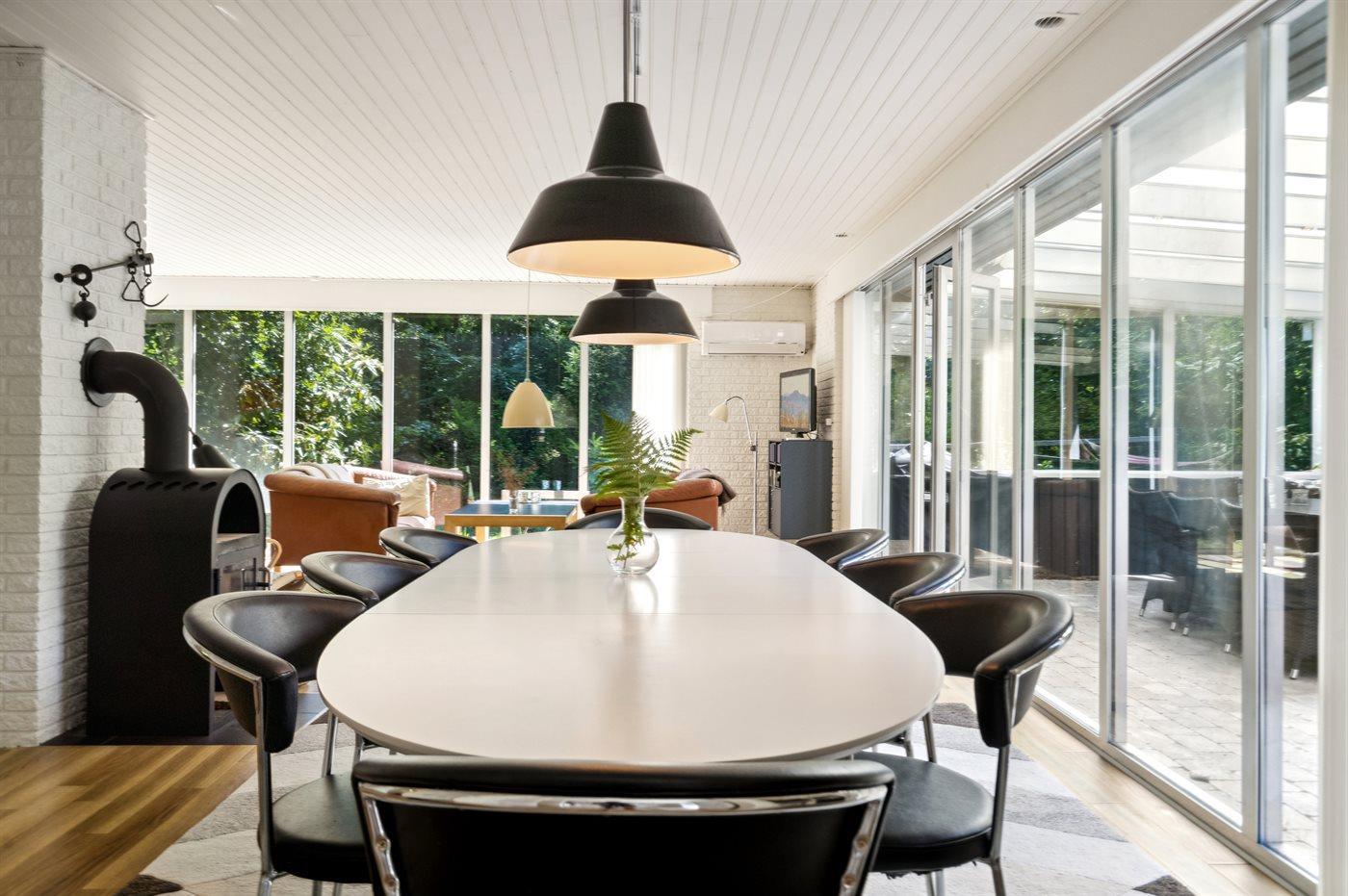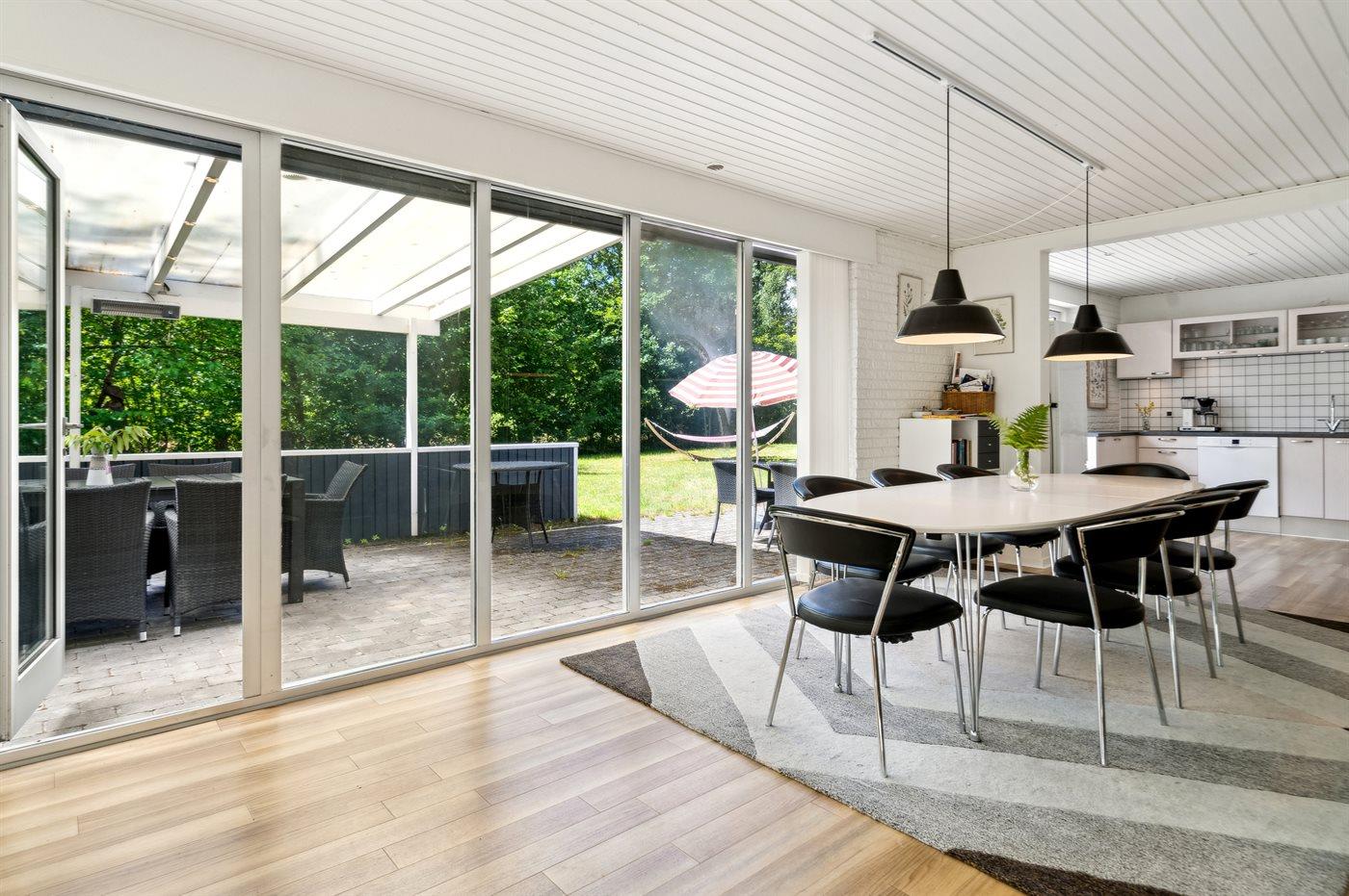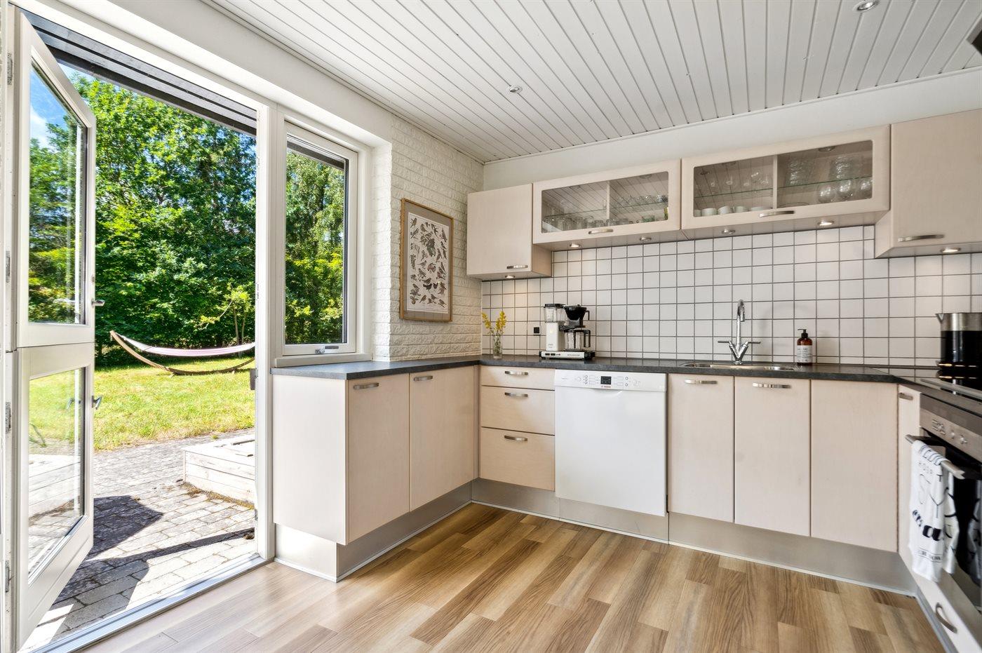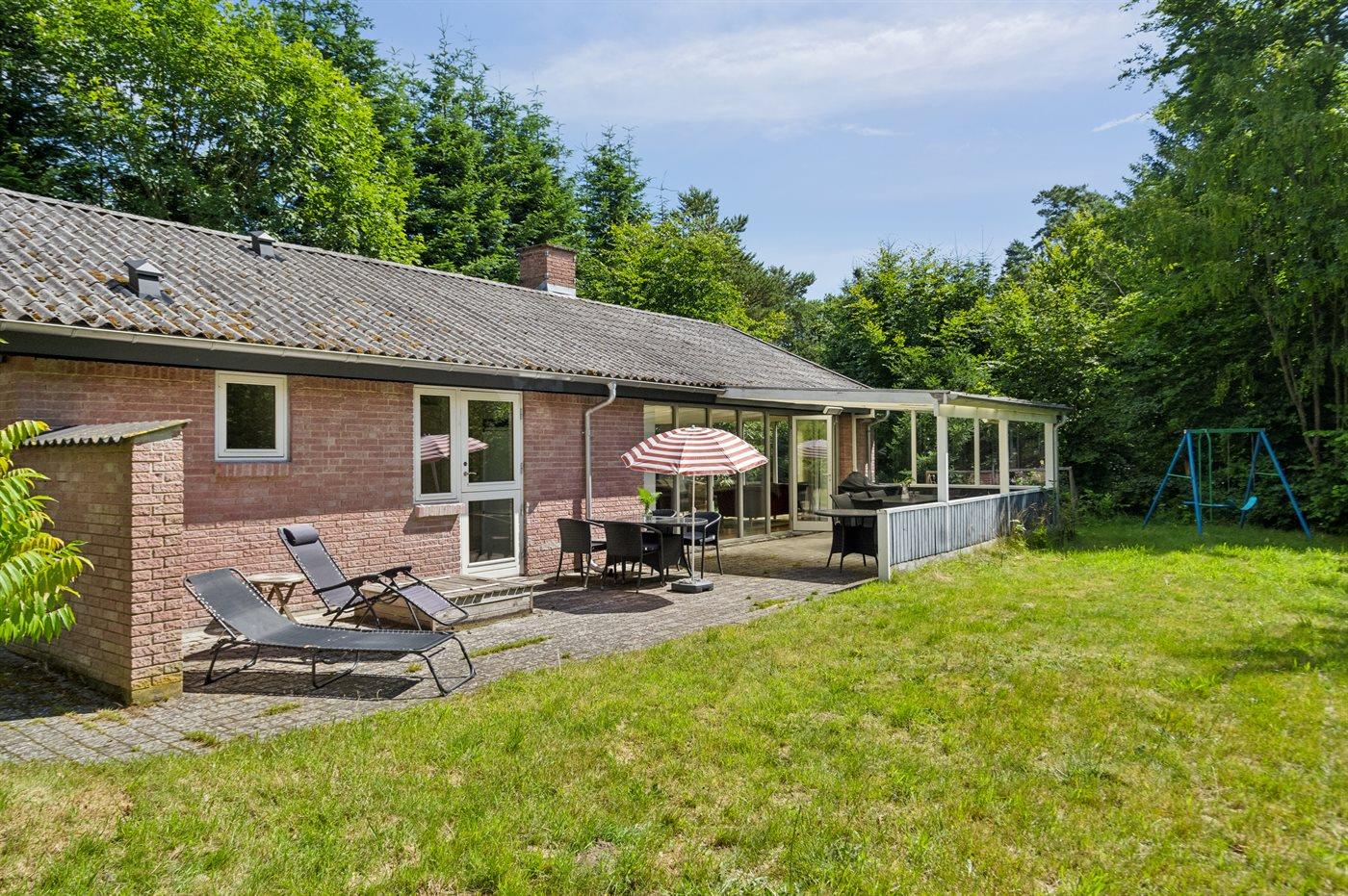 Flot og rummeligt sommerhus i roligt naturområde nær Ebeltoft med store terrasser og moderne faciliteter.