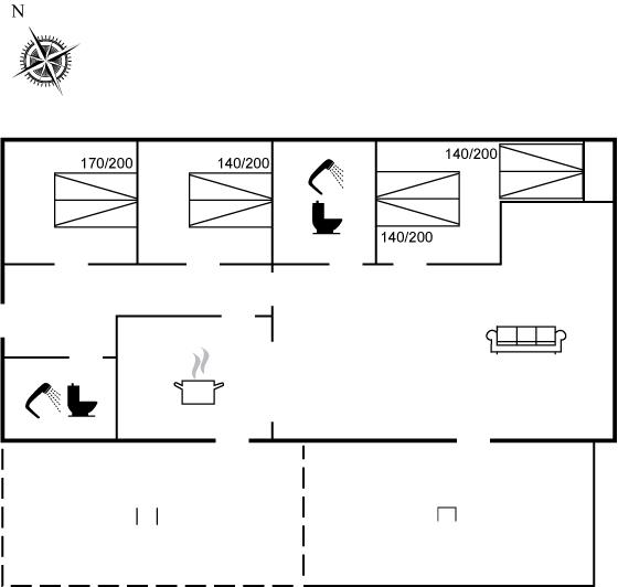 Der er i alt 3 soveværelser. Sovepladserne fordeler sig på: 8 sovepladser i dobbeltsenge.