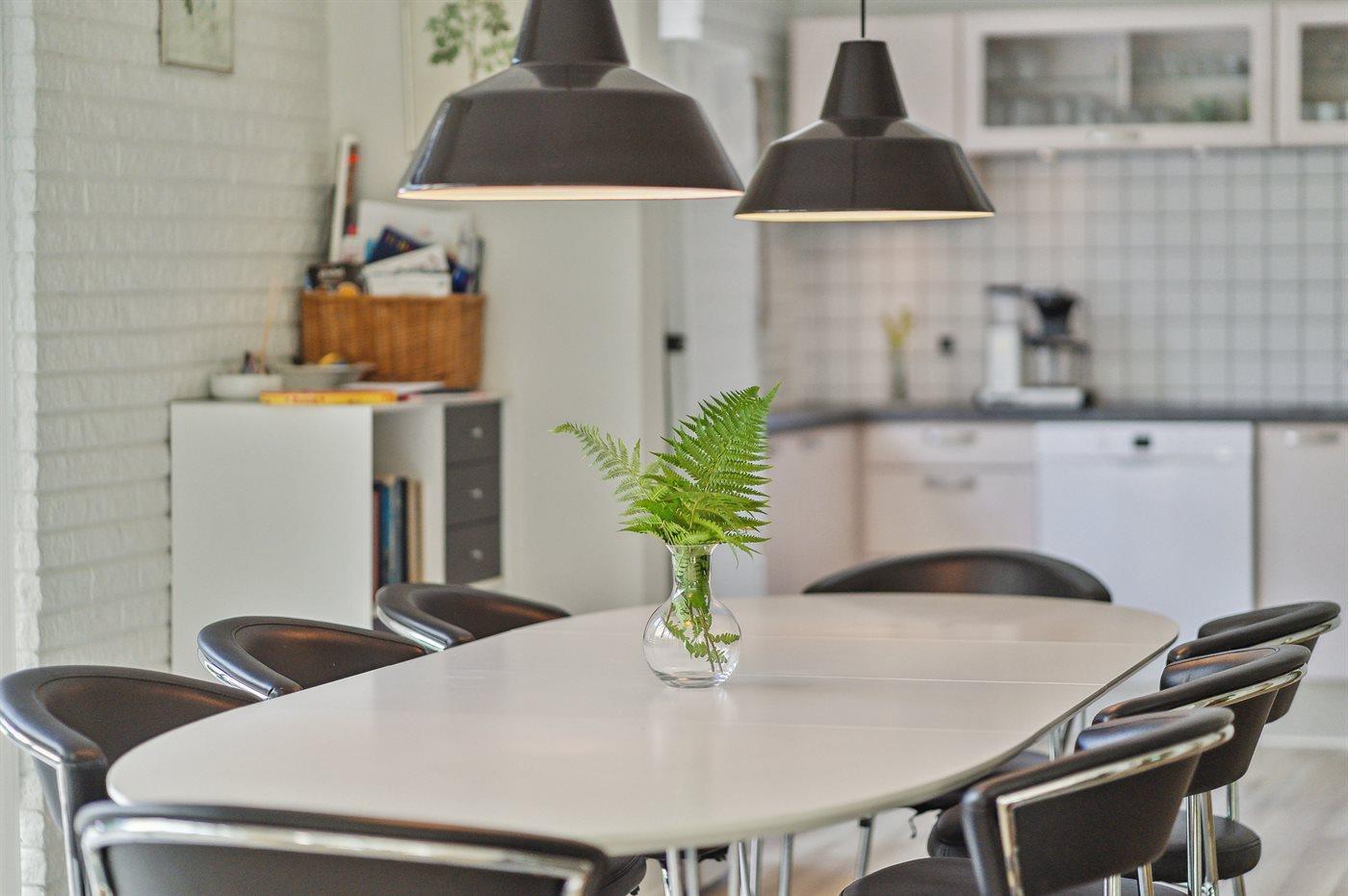 Køkkenet er udstyret med 1 køleskab. Der er 4 induktionskogeplader, varmluftovn, mikrobølgeovn samt opvaskemaskine.