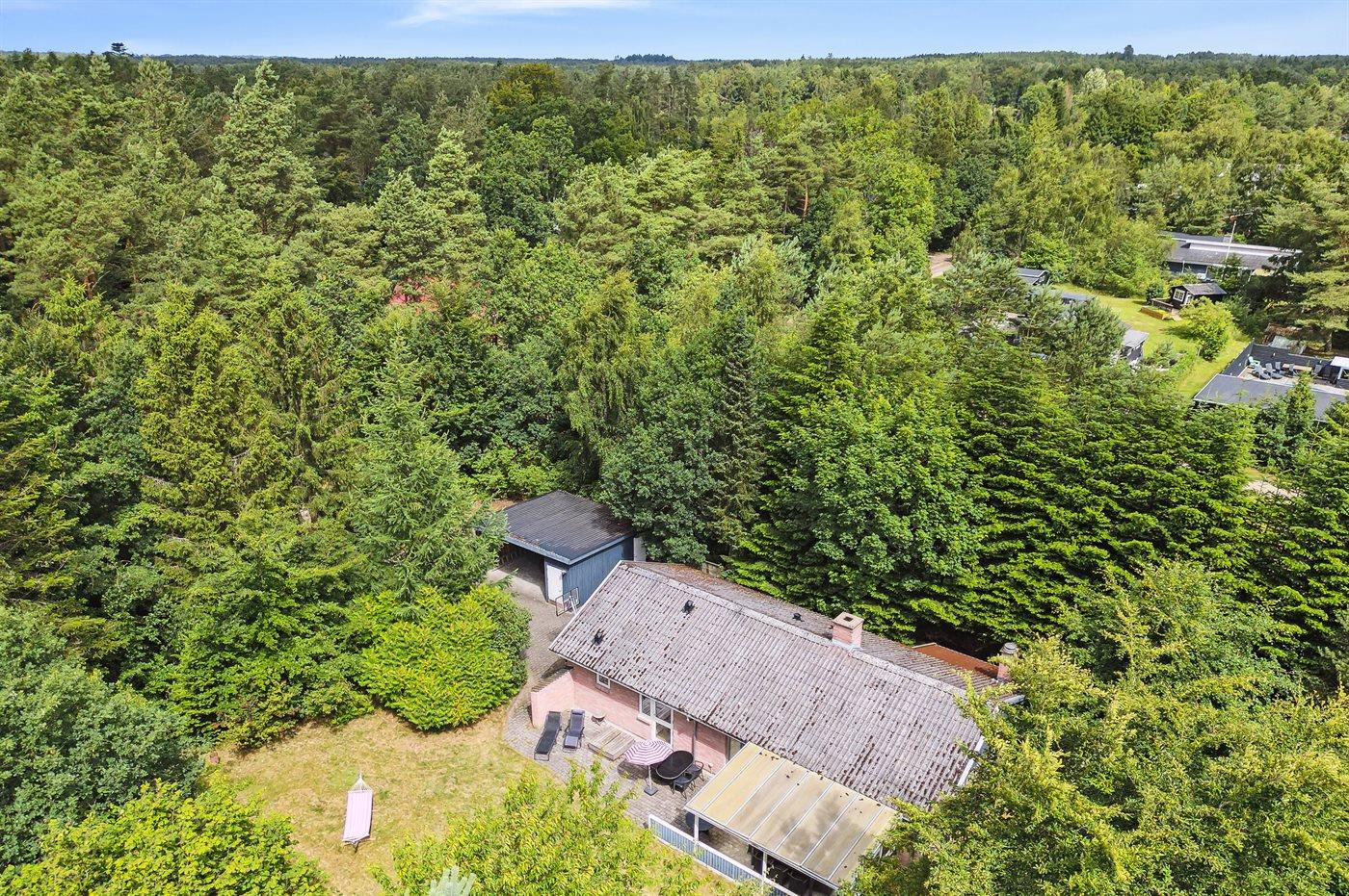Ferieboligen er beliggende på en 1400 m² stor naturgrund. Der er 7000 m til havet. Nærmeste forretning er beliggende i en afstand af 4000 m. Til ferieboligen hører 60 m² terrasseareal. Desuden er der 26 m² overdækket terrasse. Sandkasse. Parkering ved ferieboligen.