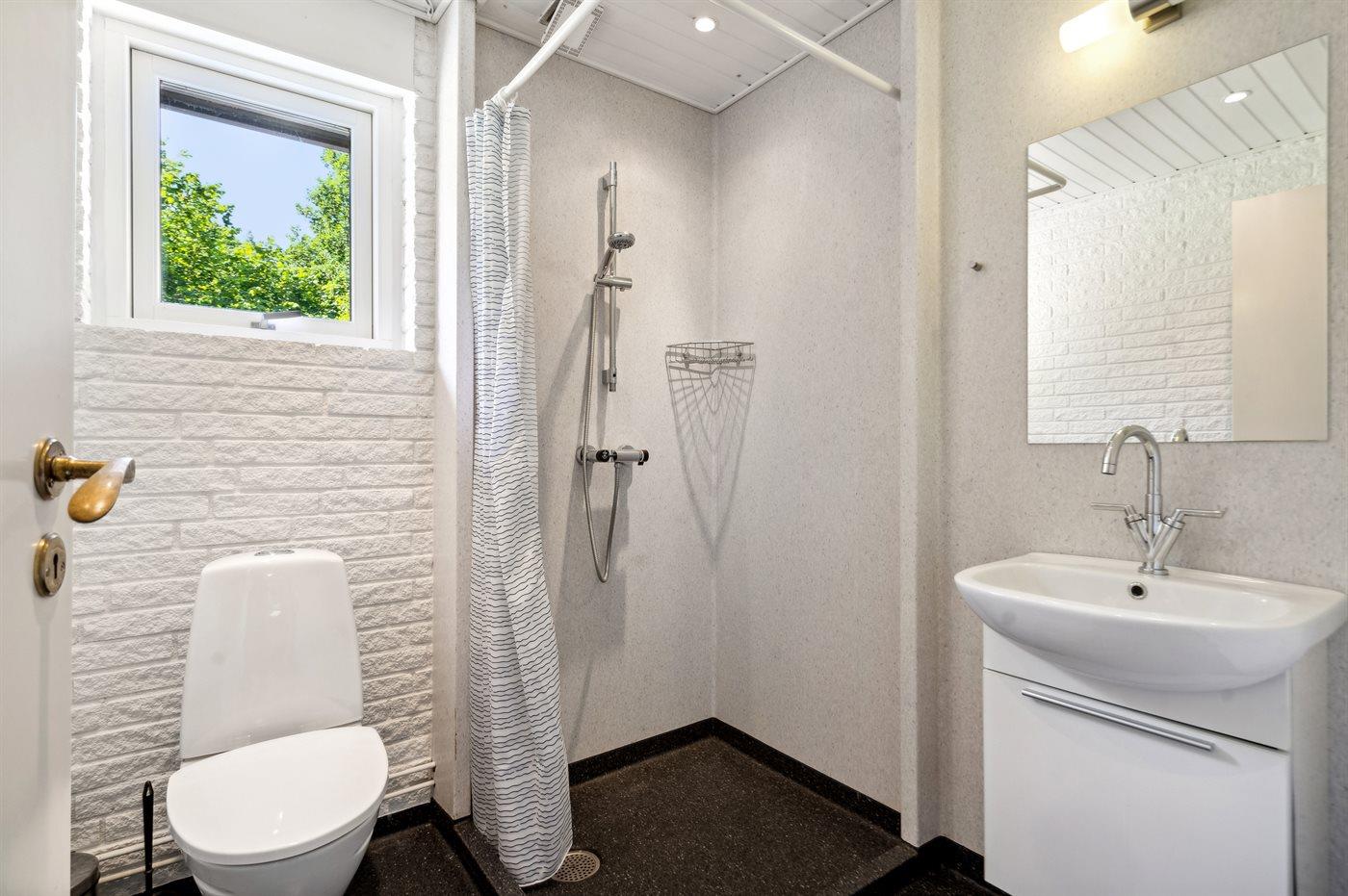 Der er 2 badeværelser med bruseniche og 2 toiletter. Der er gulvvarme på 2 badeværelser.